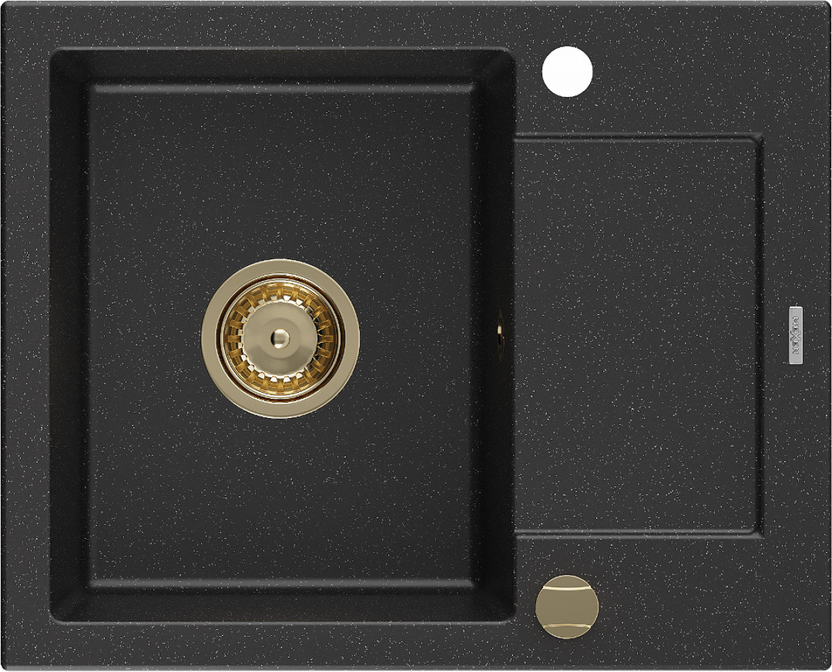 Mexen Enzo   Chiuveta bucatarie granit 1 cuva + picurator+ cadou pop up sifon   576 x 465 mm, negru / chrom, sifon  auriu  - 6506571005-73-G