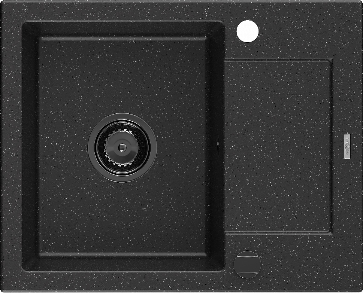 Mexen Enzo Chiuveta bucatarie granit 1 cuva + picurator+ cadou pop up sifon 576 x 465 mm, negru / chrom, sifon negru - 6506571005-73-B