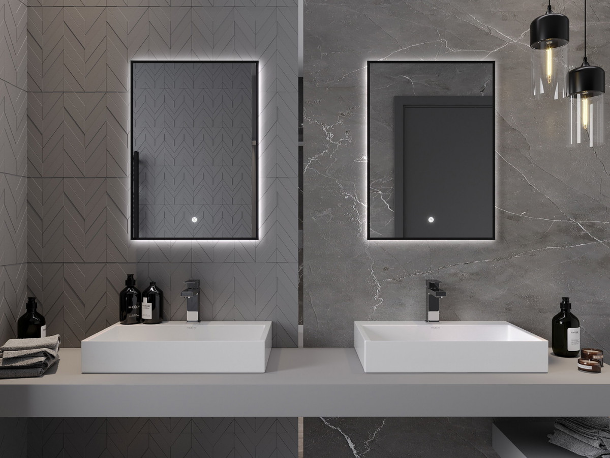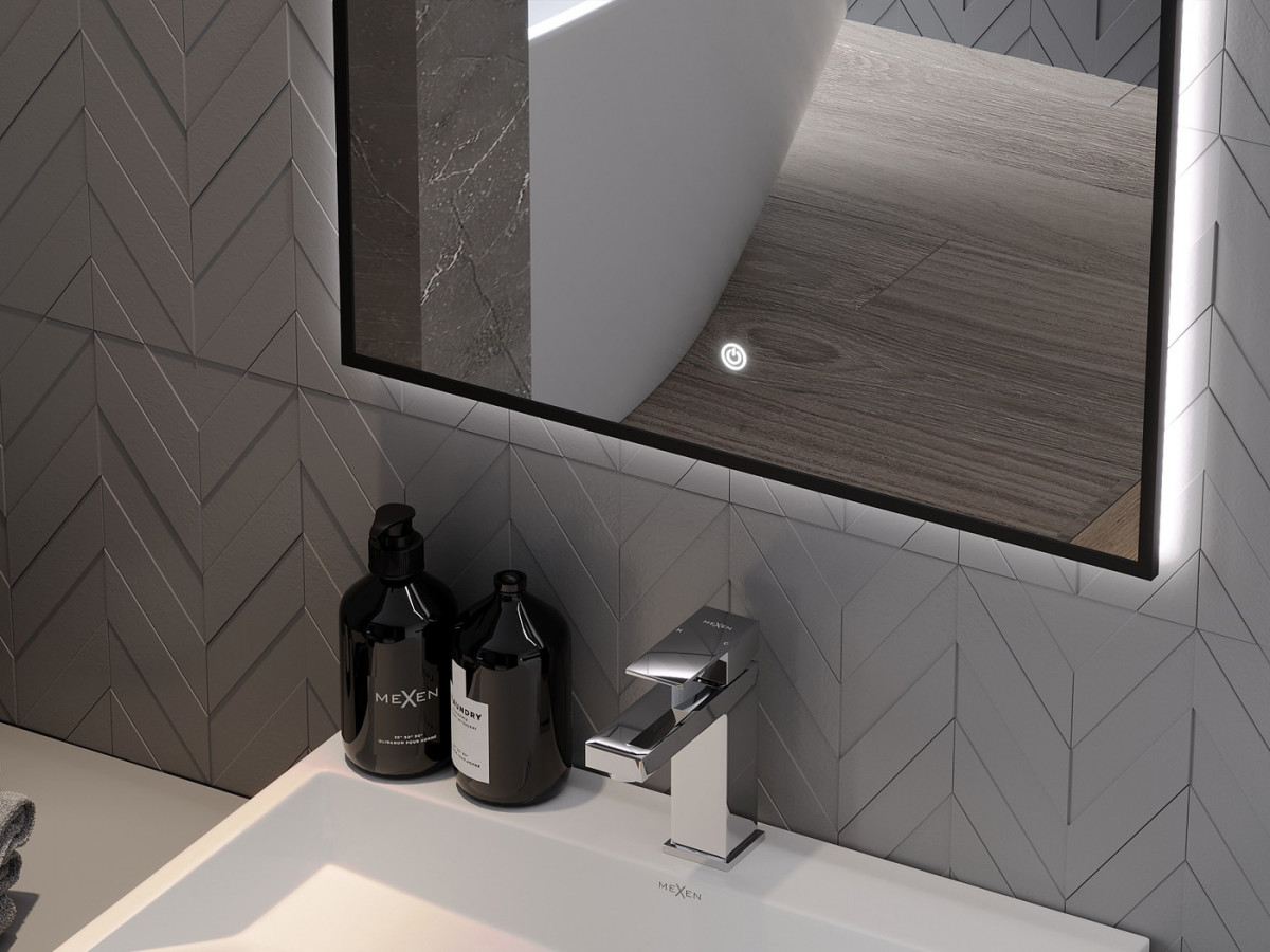 Mexen Erma Oglinda de baie iluminata 50 x 70 cm, LED 6000K, antypara, negru cadru - 9814-050-070-611-70 Prezentarea