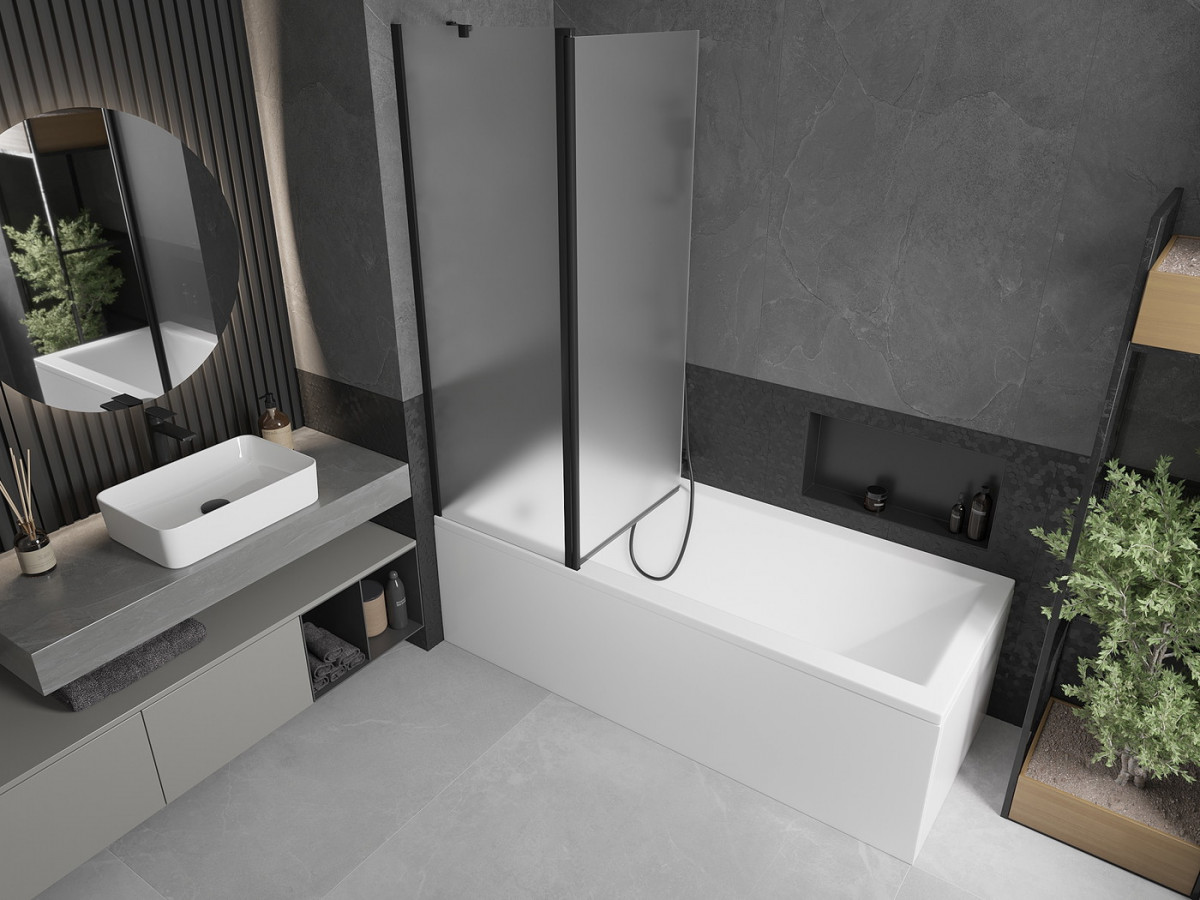 Mexen Flip Paravan de cada cu 1+1 aripi batanta 120 x 150 cm, satin , negru - 894-120-101-70-30
