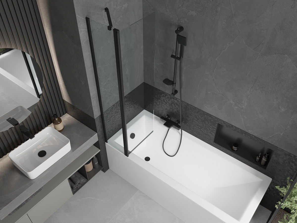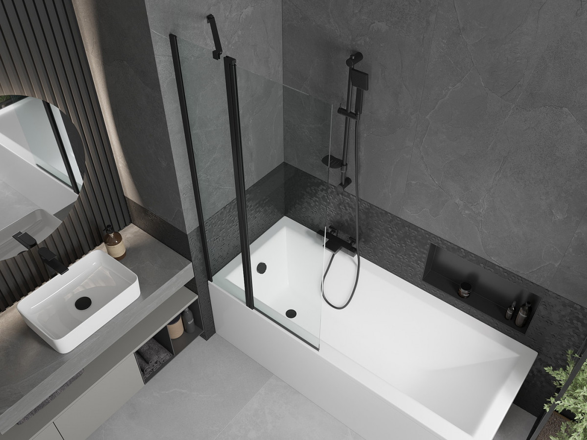 Mexen Flip  Paravan de cada  cu 1+1 aripi batanta  80 x 150 cm, transparent,  negru - 894-080-101-70-00