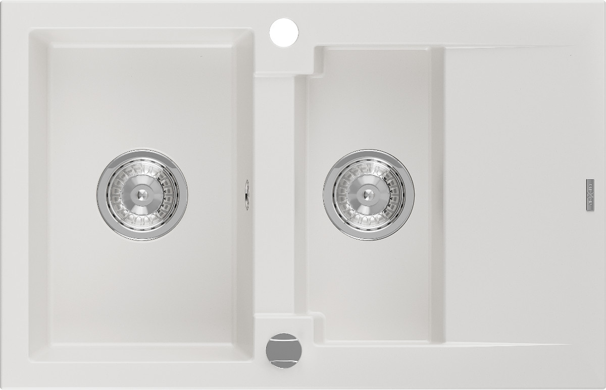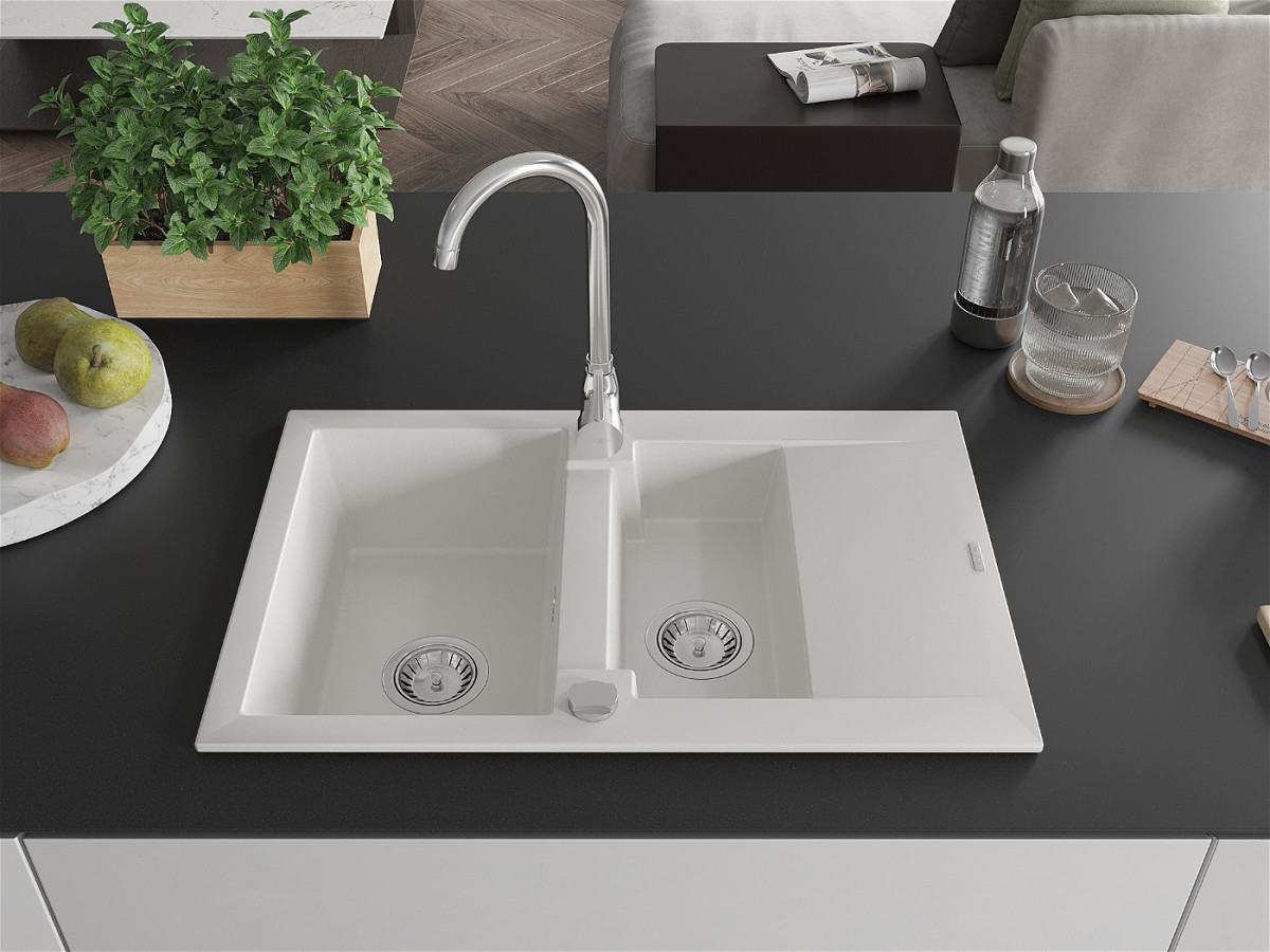 Mexen Gaspar Chiuveta bucatarie granit 1,5 cuva + picurator+ cadou pop up sifon 737 x 475 mm, alb - 6507731505-20 Prezentarea