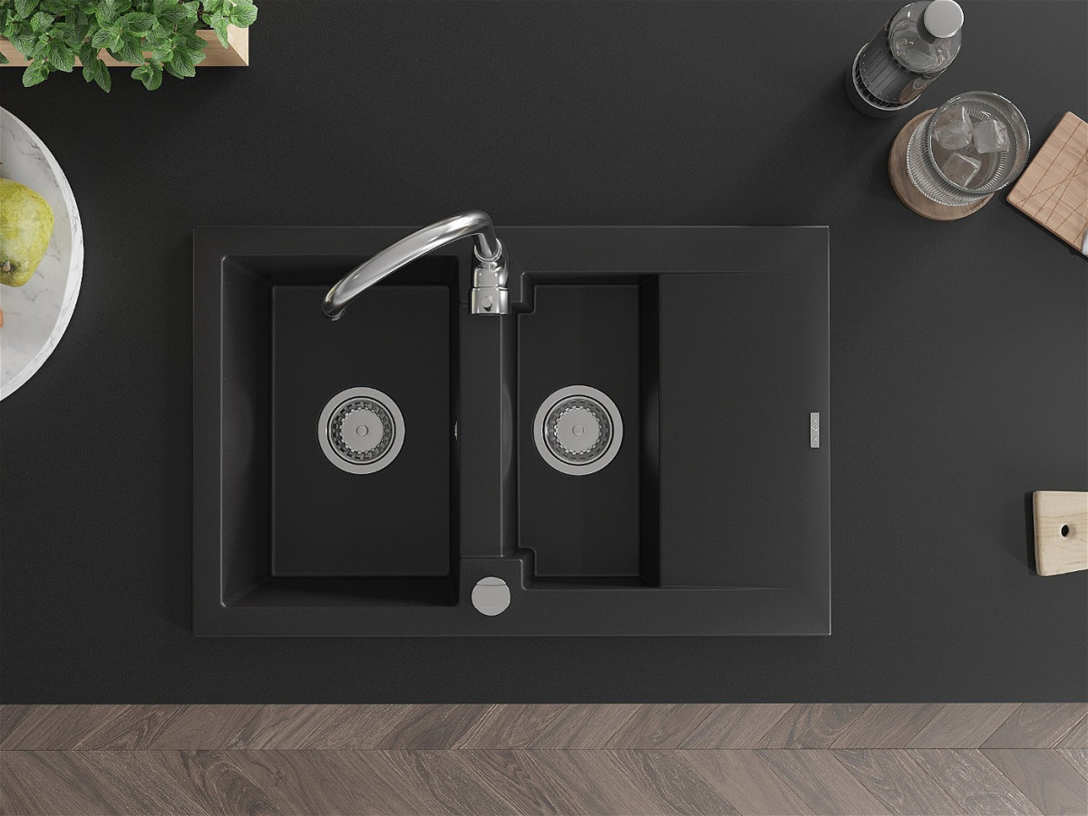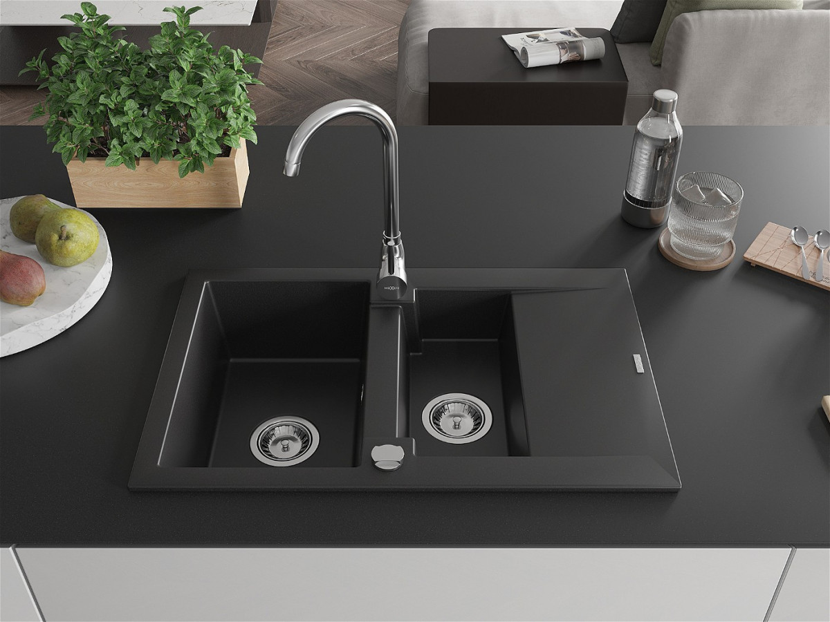 Mexen Gaspar Chiuveta bucatarie granit 1,5 cuva + picurator+ cadou pop up sifon 737 x 475 mm, negru - 6507731505-77 Prezentarea