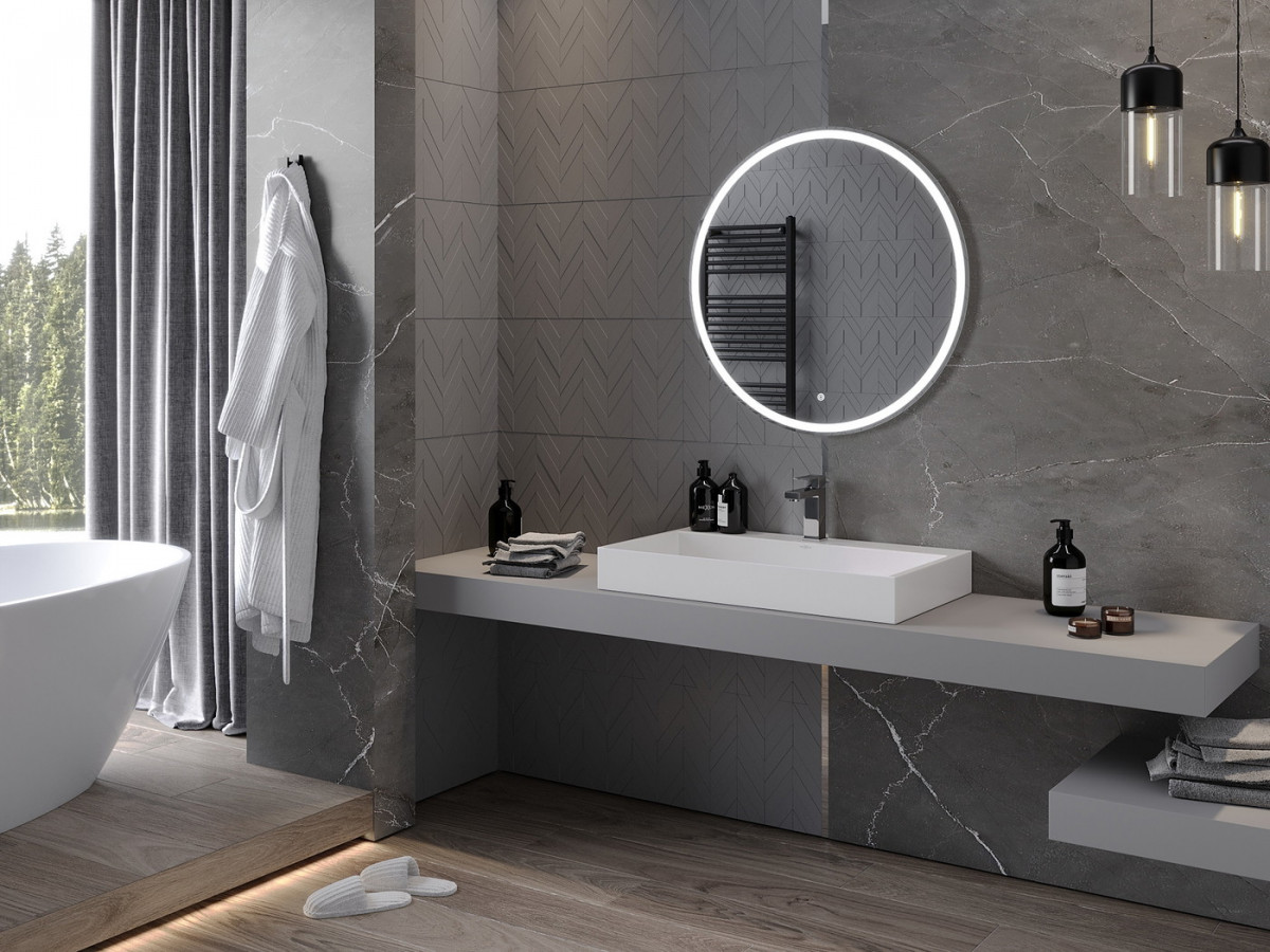 Oglinda cu LED de designer de lux, care transforma baia ta intr-un spatiu nou nu numai datorita frumusetii si caracterului practic, ci mai ales datorita accesoriului. Iluminare minunată cu funcție de dezaburire.