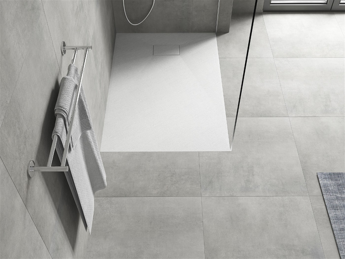 CadIă de duș subțiată cu efect de piatră Metxen, care combină cele mai recente tendințe în baie cu utilizarea practică. Poate fi instalat pe podea sau înfundat în podea, creând astfel o suprafață de duș plană cu pardoseala finală.
