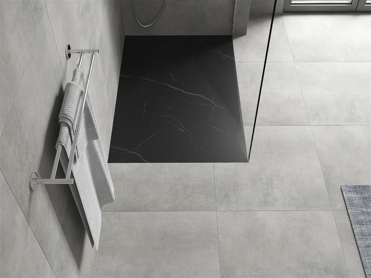 CadIă de duș subțiată cu efect de piatră Metxen, care combină cele mai recente tendințe în baie cu utilizarea practică. Poate fi instalat pe podea sau înfundat în podea, creând astfel o suprafață de duș plană cu pardoseala finală.