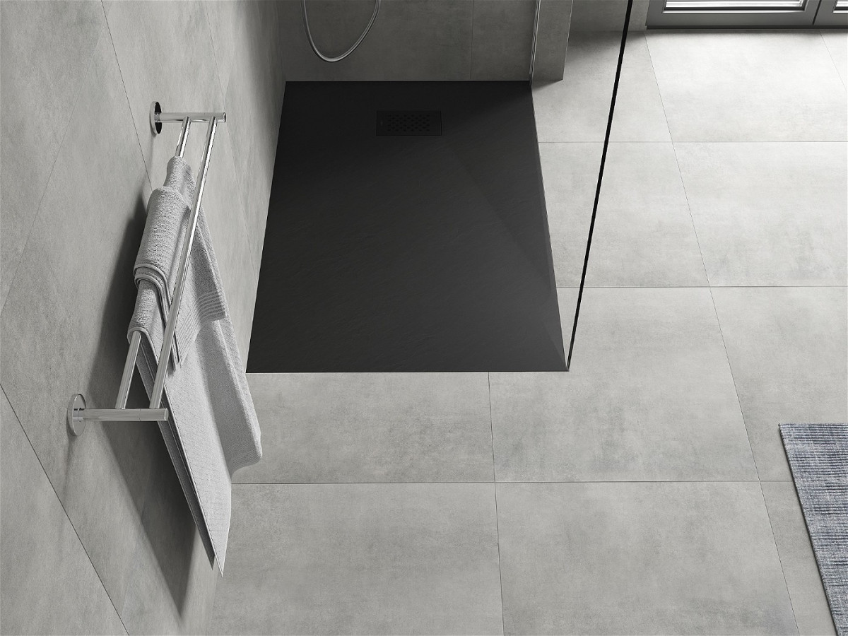 CadIă de duș subțiată cu efect de piatră Metxen, care combină cele mai recente tendințe în baie cu utilizarea practică. Poate fi instalat pe podea sau înfundat în podea, creând astfel o suprafață de duș plană cu pardoseala finală.