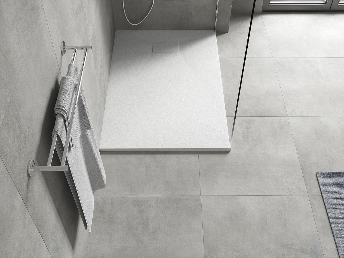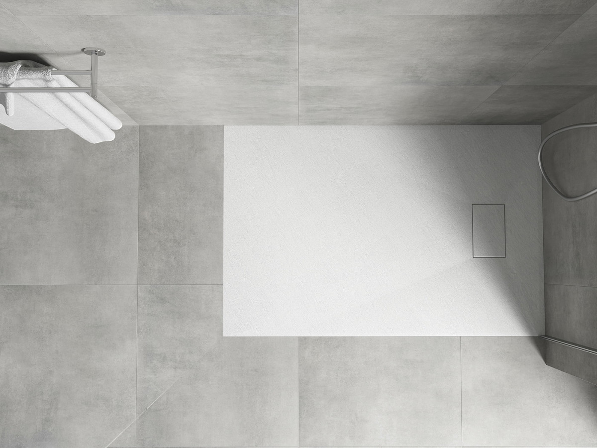 CadIă de duș subțiată cu efect de piatră Metxen, care combină cele mai recente tendințe în baie cu utilizarea practică. Poate fi instalat pe podea sau înfundat în podea, creând astfel o suprafață de duș plană cu pardoseala finală.