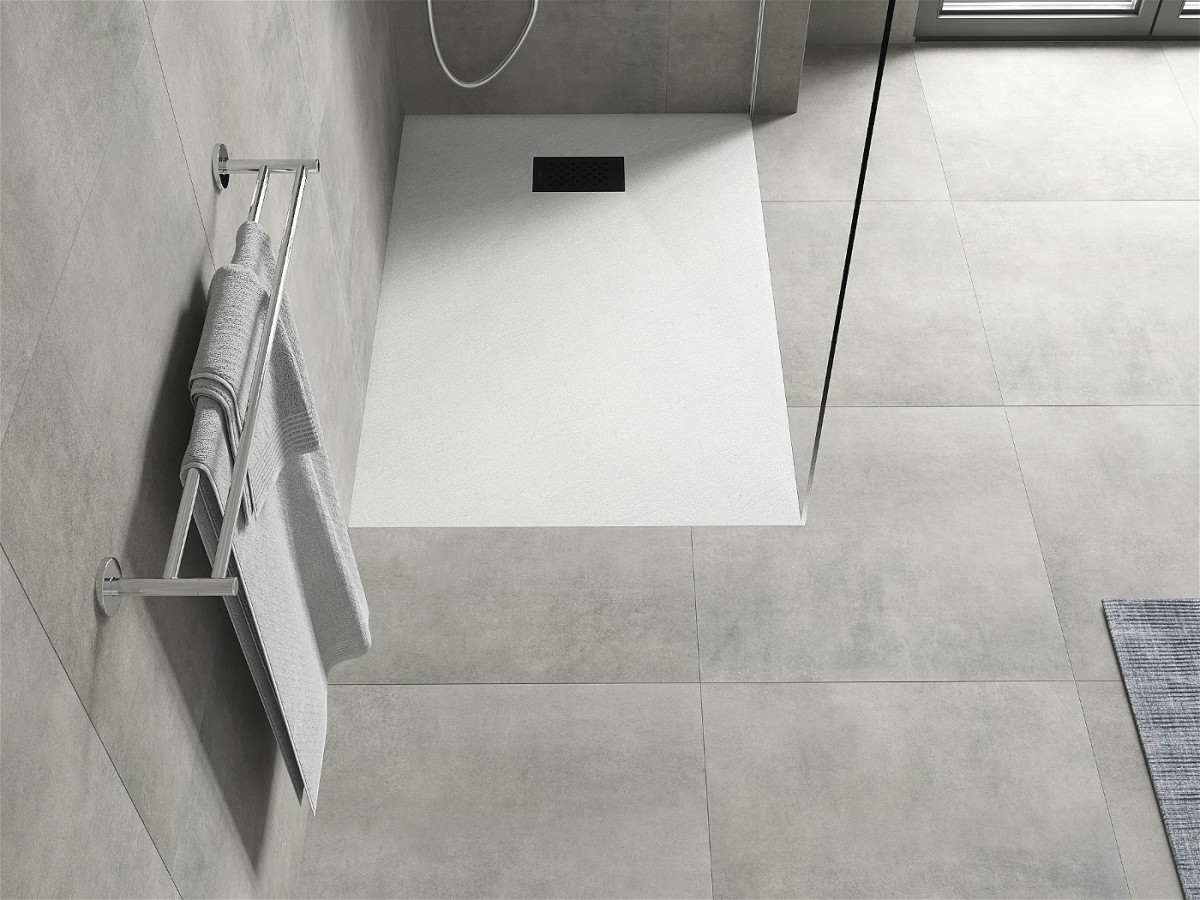 CadIă de duș subțiată cu efect de piatră Metxen, care combină cele mai recente tendințe în baie cu utilizarea practică. Poate fi instalat pe podea sau înfundat în podea, creând astfel o suprafață de duș plană cu pardoseala finală.