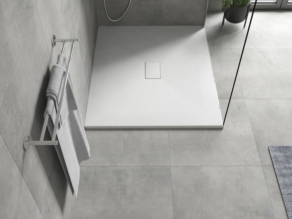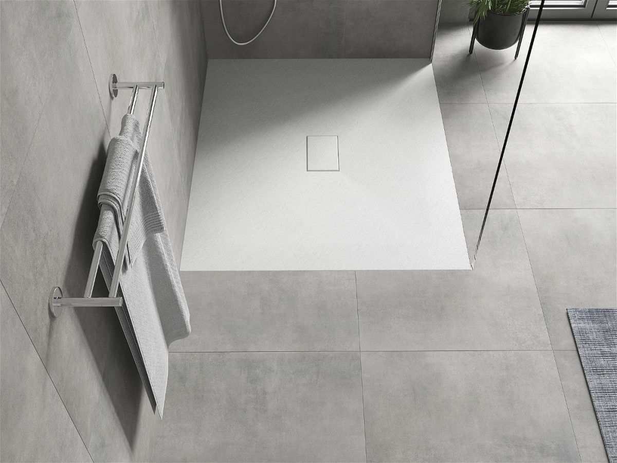 CadIă de duș subțiată cu efect de piatră Metxen, care combină cele mai recente tendințe în baie cu utilizarea practică. Poate fi instalat pe podea sau înfundat în podea, creând astfel o suprafață de duș plană cu pardoseala finală.