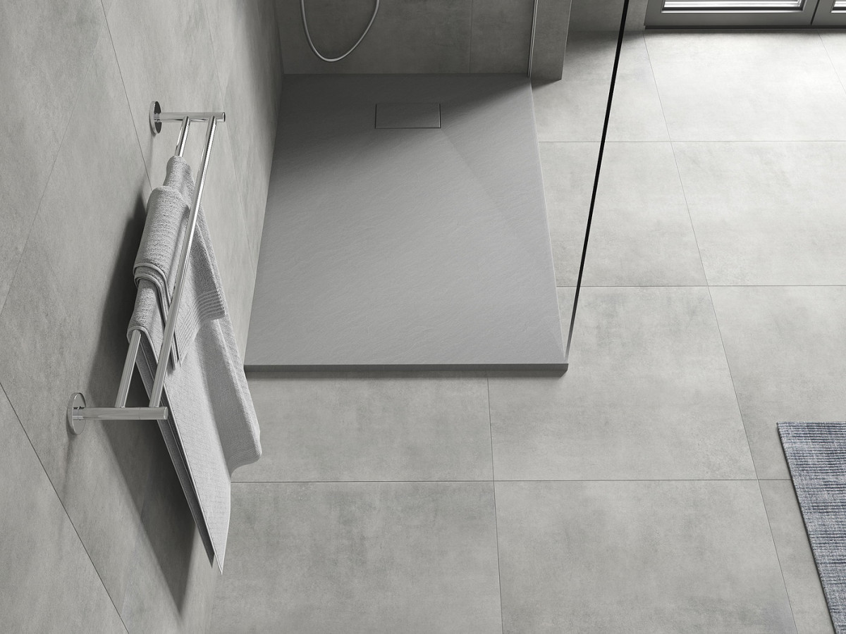 CadIă de duș subțiată cu efect de piatră Metxen, care combină cele mai recente tendințe în baie cu utilizarea practică. Poate fi instalat pe podea sau înfundat în podea, creând astfel o suprafață de duș plană cu pardoseala finală.