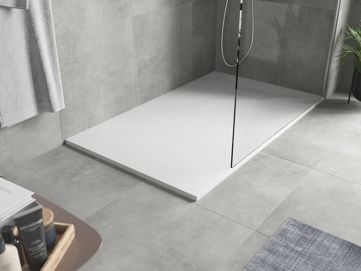 CadIă de duș subțiată cu efect de piatră Metxen, care combină cele mai recente tendințe în baie cu utilizarea practică. Poate fi instalat pe podea sau înfundat în podea, creând astfel o suprafață de duș plană cu pardoseala finală.
