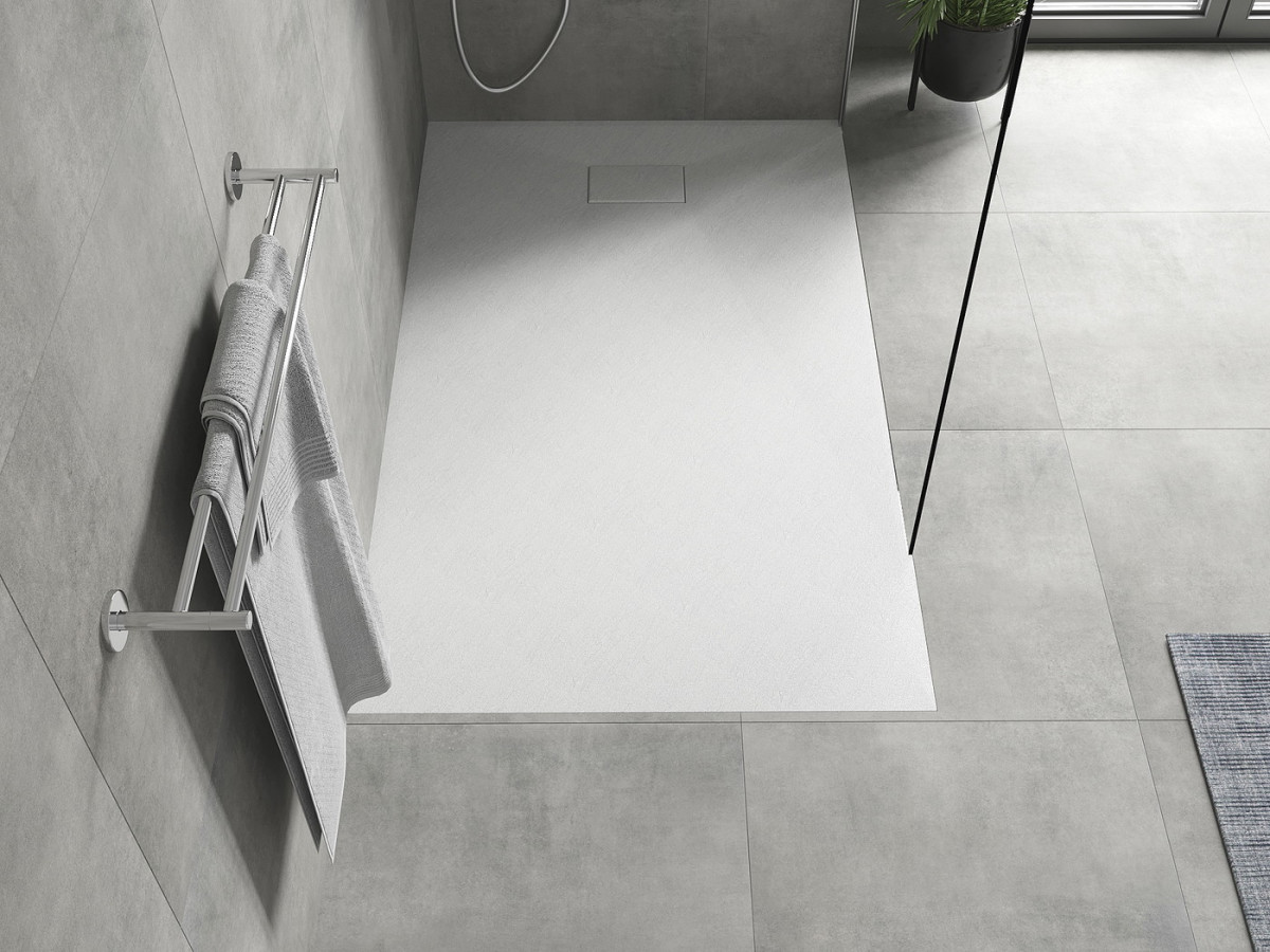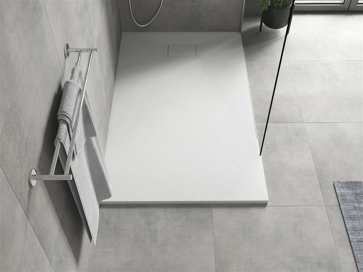 CadIă de duș subțiată cu efect de piatră Metxen, care combină cele mai recente tendințe în baie cu utilizarea practică. Poate fi instalat pe podea sau înfundat în podea, creând astfel o suprafață de duș plană cu pardoseala finală.
