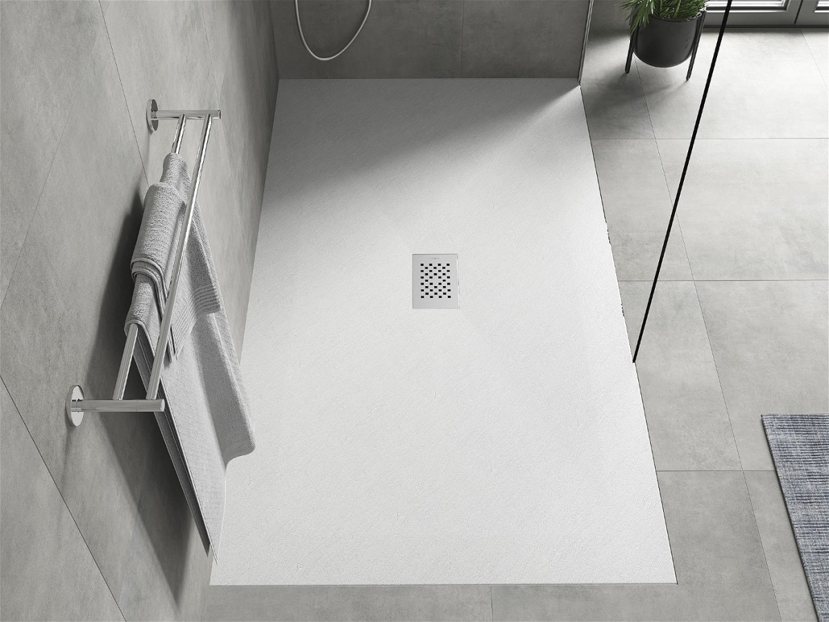CadIă de duș subțiată cu efect de piatră Metxen, care combină cele mai recente tendințe în baie cu utilizarea practică. Poate fi instalat pe podea sau înfundat în podea, creând astfel o suprafață de duș plană cu pardoseala finală.