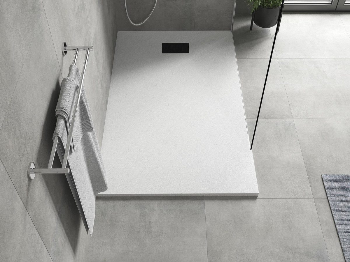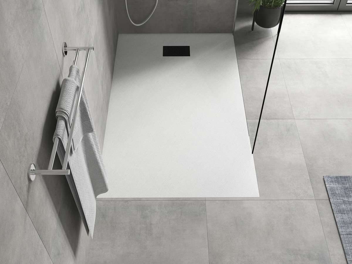 CadIă de duș subțiată cu efect de piatră Metxen, care combină cele mai recente tendințe în baie cu utilizarea practică. Poate fi instalat pe podea sau înfundat în podea, creând astfel o suprafață de duș plană cu pardoseala finală.