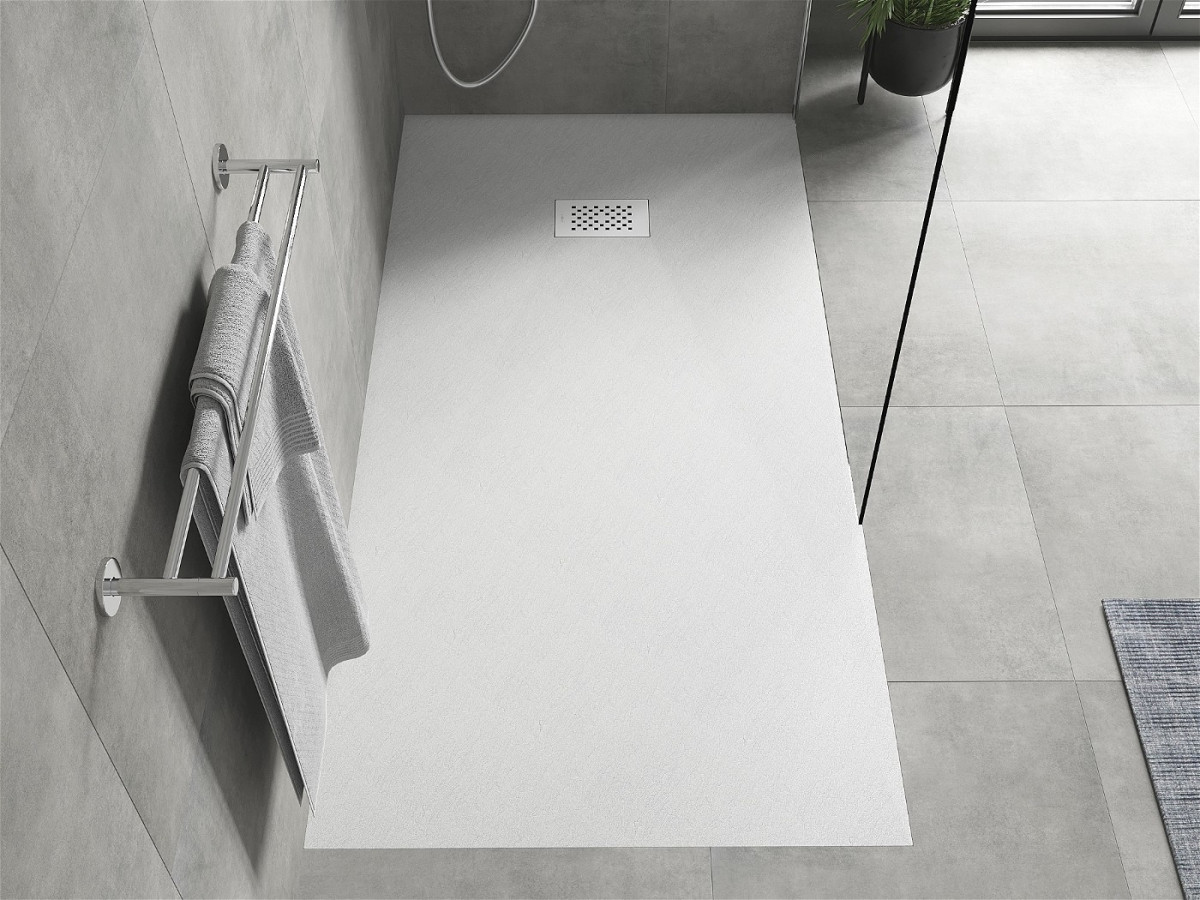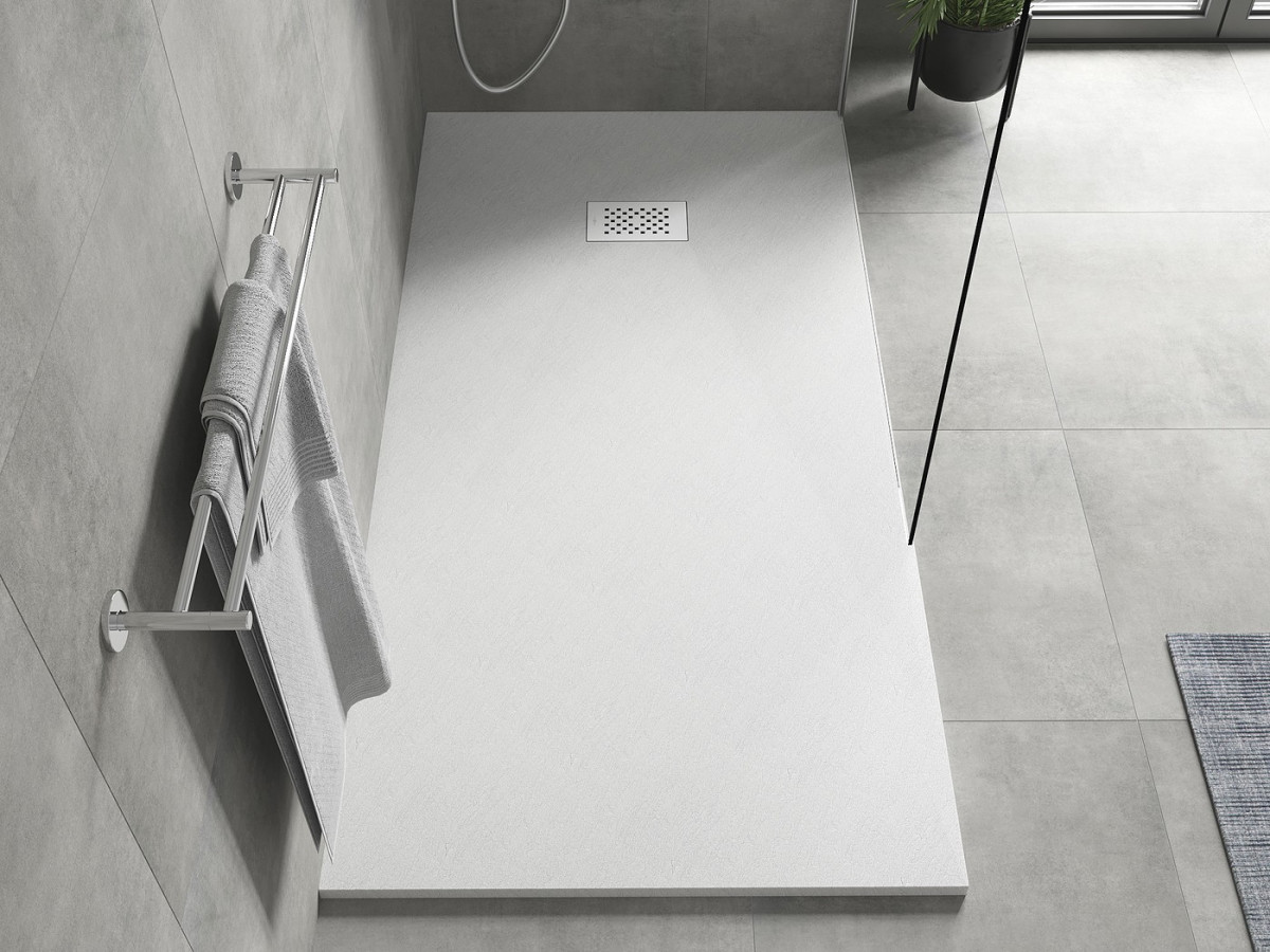 CadIă de duș subțiată cu efect de piatră Metxen, care combină cele mai recente tendințe în baie cu utilizarea practică. Poate fi instalat pe podea sau înfundat în podea, creând astfel o suprafață de duș plană cu pardoseala finală.