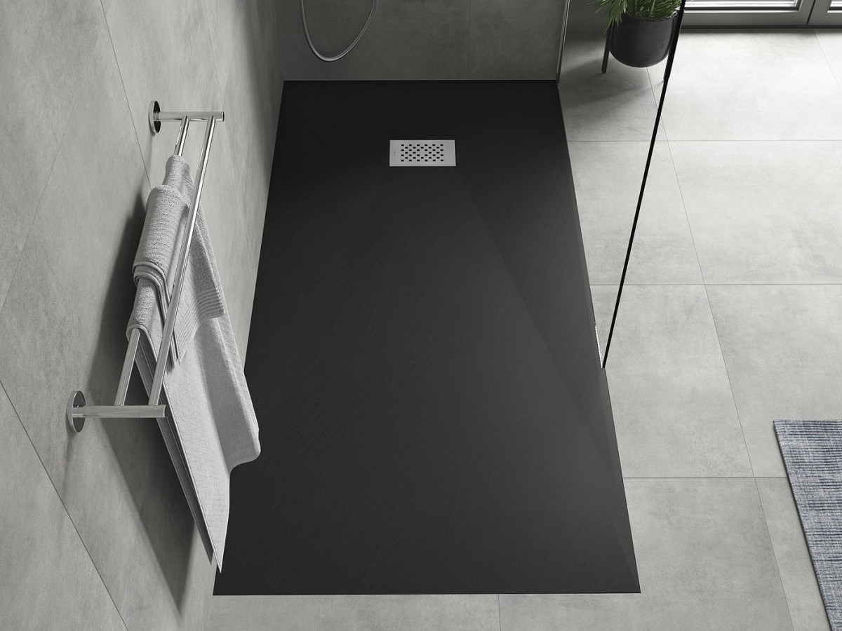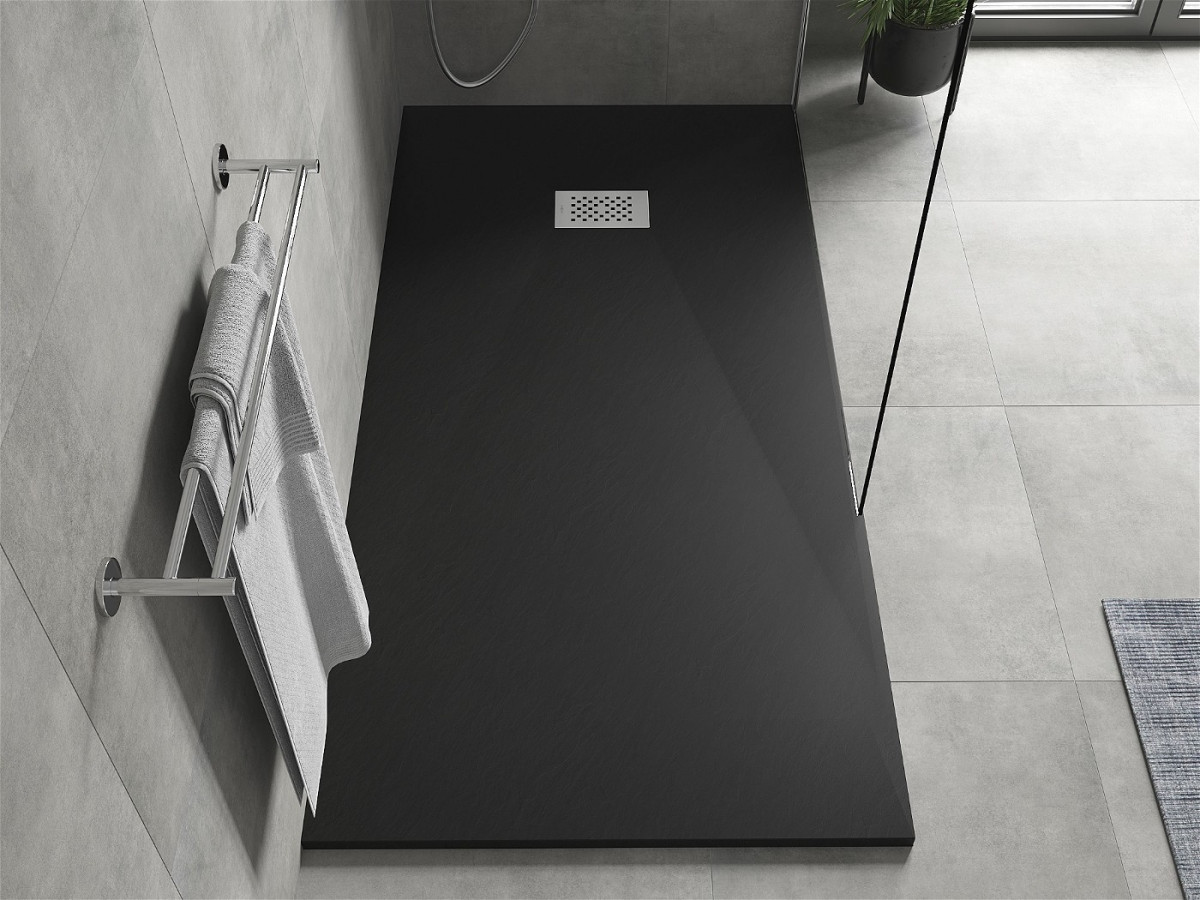 CadIă de duș subțiată cu efect de piatră Metxen, care combină cele mai recente tendințe în baie cu utilizarea practică. Poate fi instalat pe podea sau înfundat în podea, creând astfel o suprafață de duș plană cu pardoseala finală.