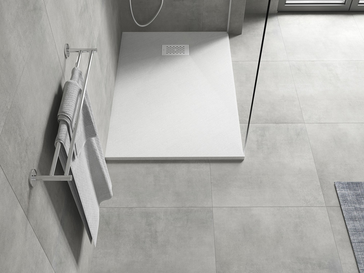 CadIă de duș subțiată cu efect de piatră Metxen, care combină cele mai recente tendințe în baie cu utilizarea practică. Poate fi instalat pe podea sau înfundat în podea, creând astfel o suprafață de duș plană cu pardoseala finală.