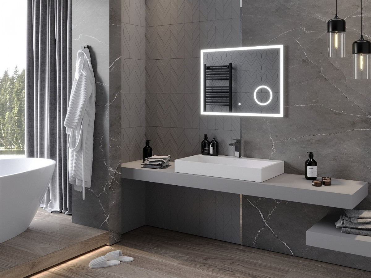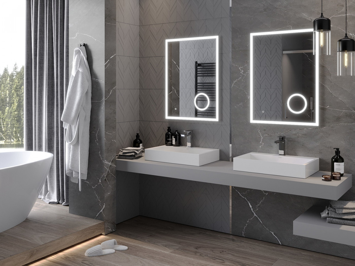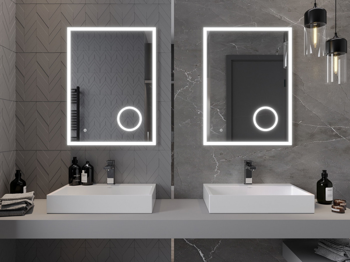 Oglinda cu LED de designer de lux, care transforma baia ta intr-un spatiu nou nu numai datorita frumusetii si caracterului practic, ci mai ales datorita accesoriului. Iluminare minunată cu funcție de dezaburire.