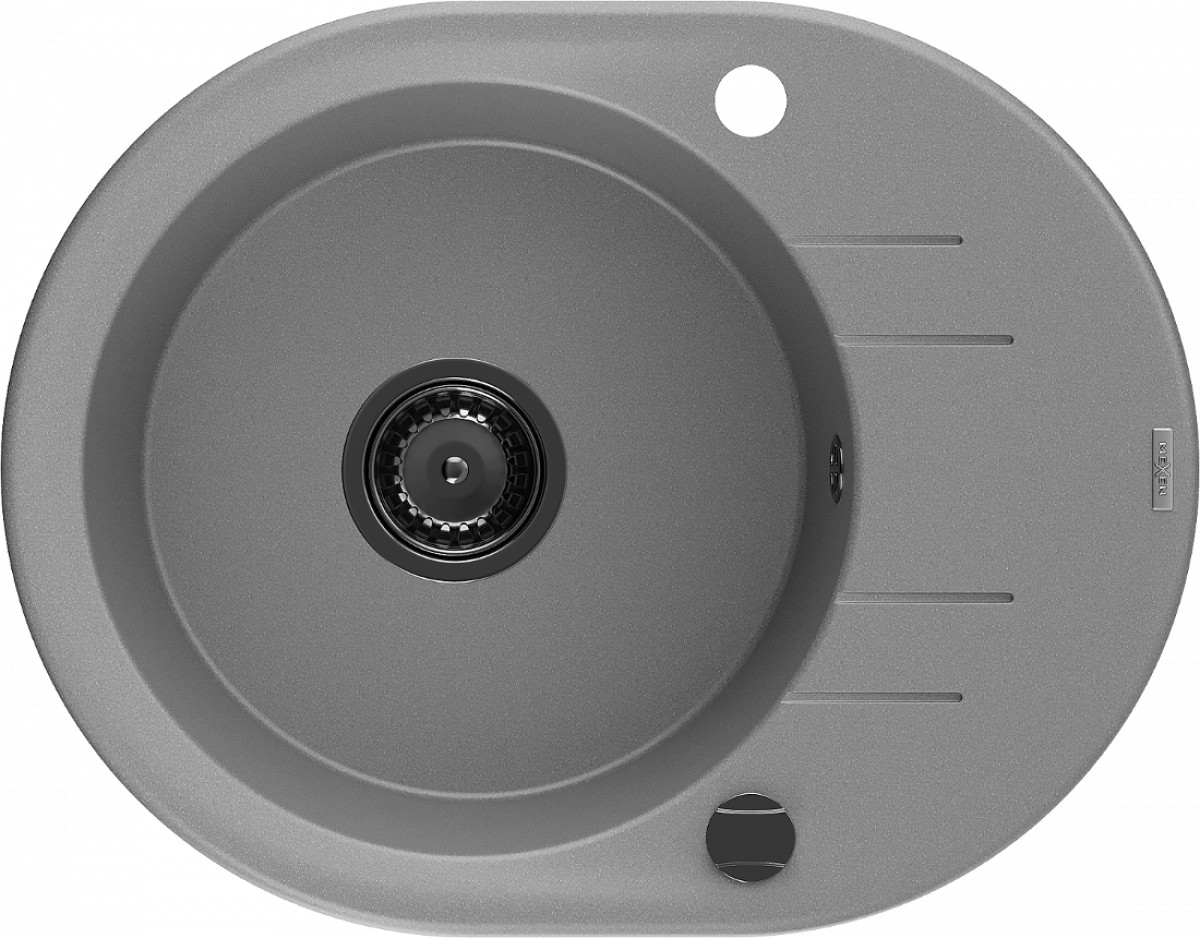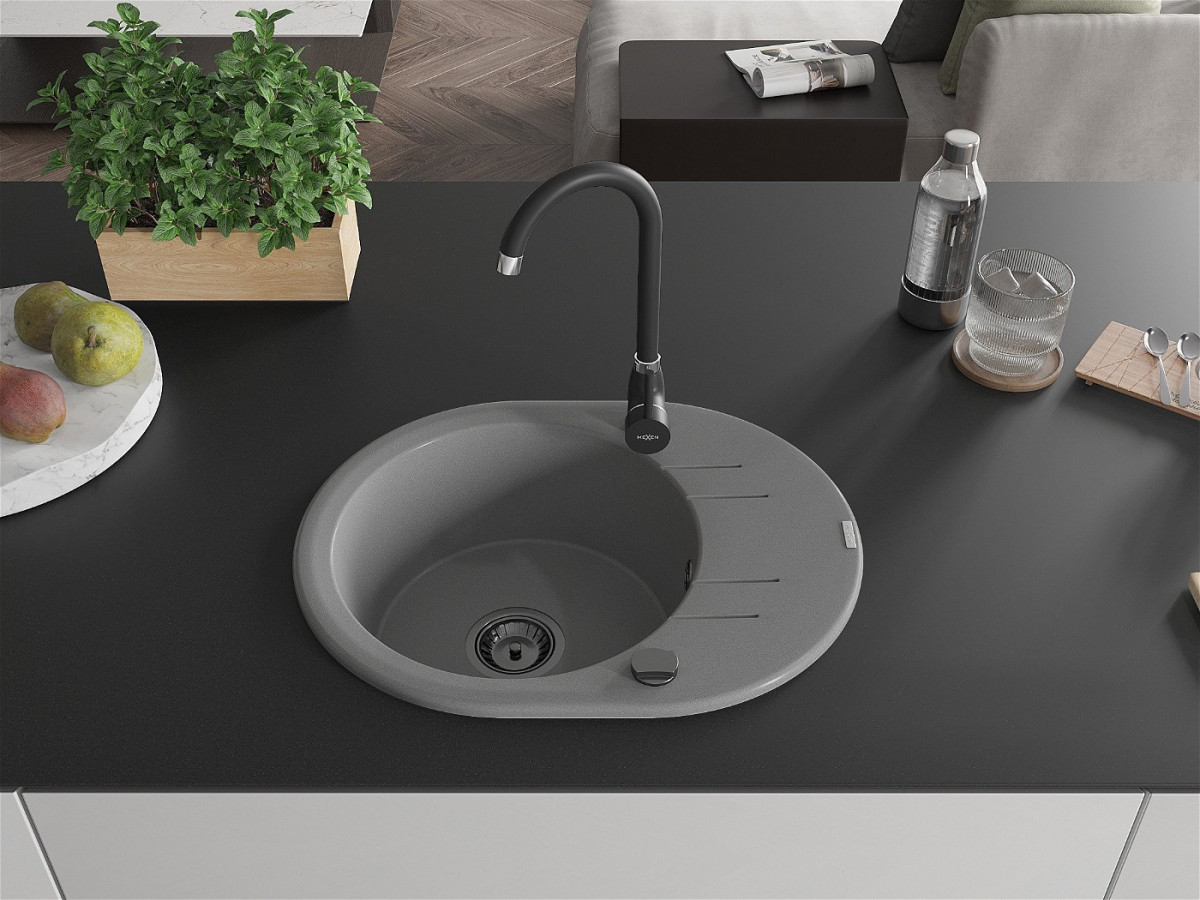 Mexen Kevin   Chiuveta bucatarie granit rotund + cadou pop up sifon 586 x 458 mm, gri , sifon  negru  - 6517581005-71-B