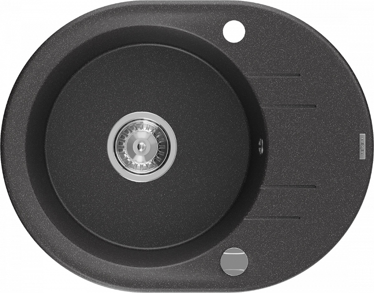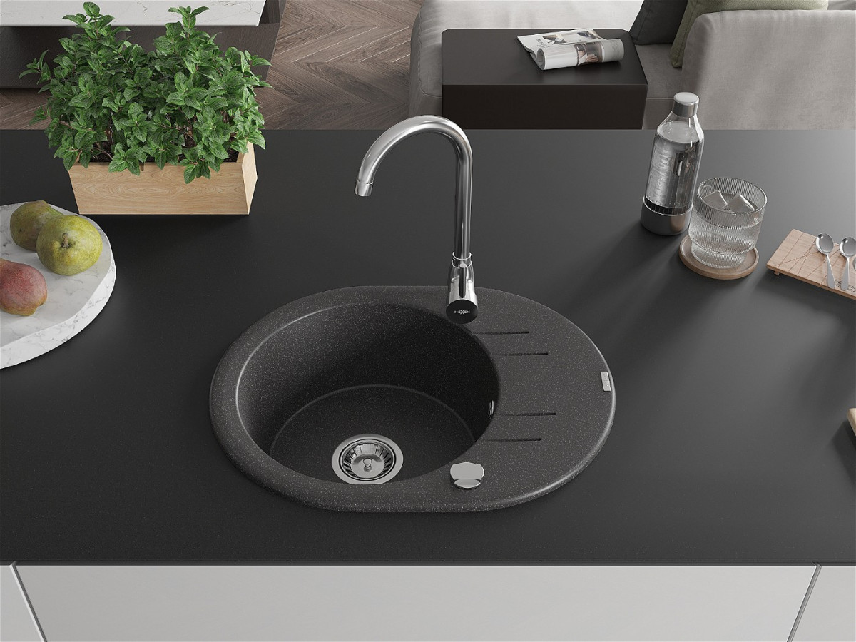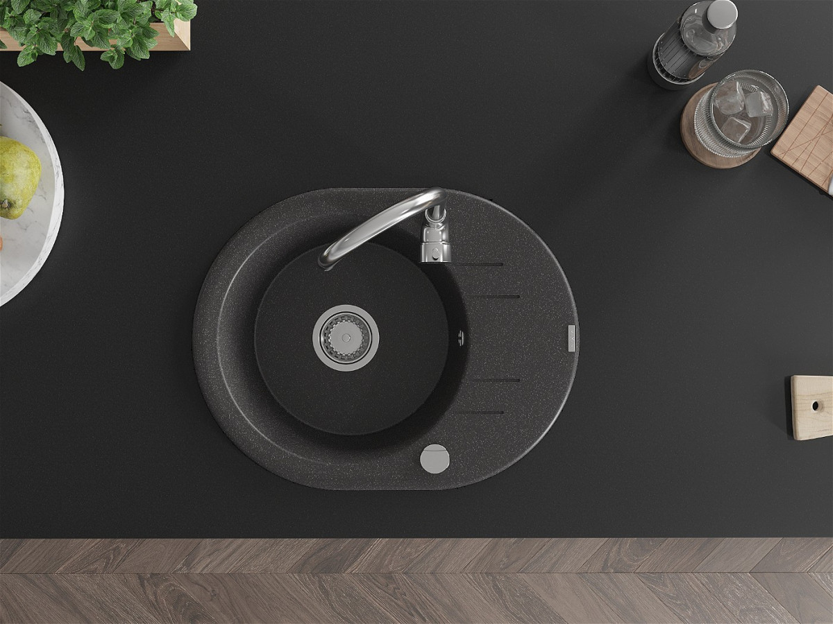 Mexen Kevin Chiuveta bucatarie granit rotund + cadou pop up sifon 586 x 458 mm, negru piatra, sifon chrom - 6517581005-76 Prezentarea