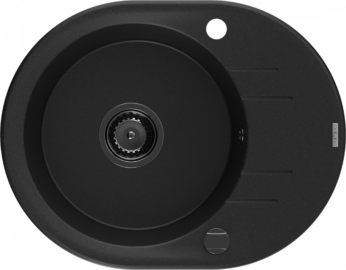 Mexen Kevin   Chiuveta bucatarie granit rotund + cadou pop up sifon 586 x 458 mm, negru , sifon  negru  - 6517581005-77-B