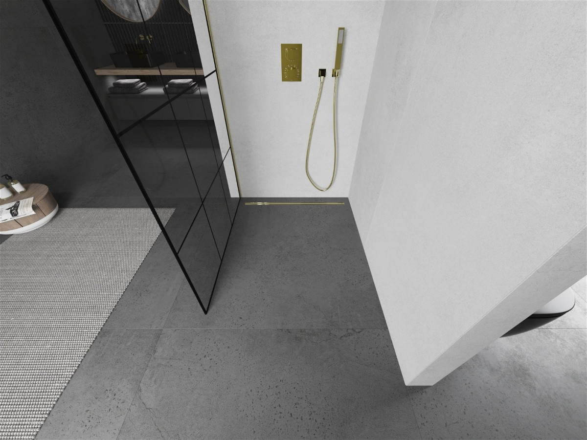 Mexen Kioto Walk In 120 x 200 cm, transparent/ negru modelata 8 mm, auriu - 800-120-101-50-77 Prezentarea