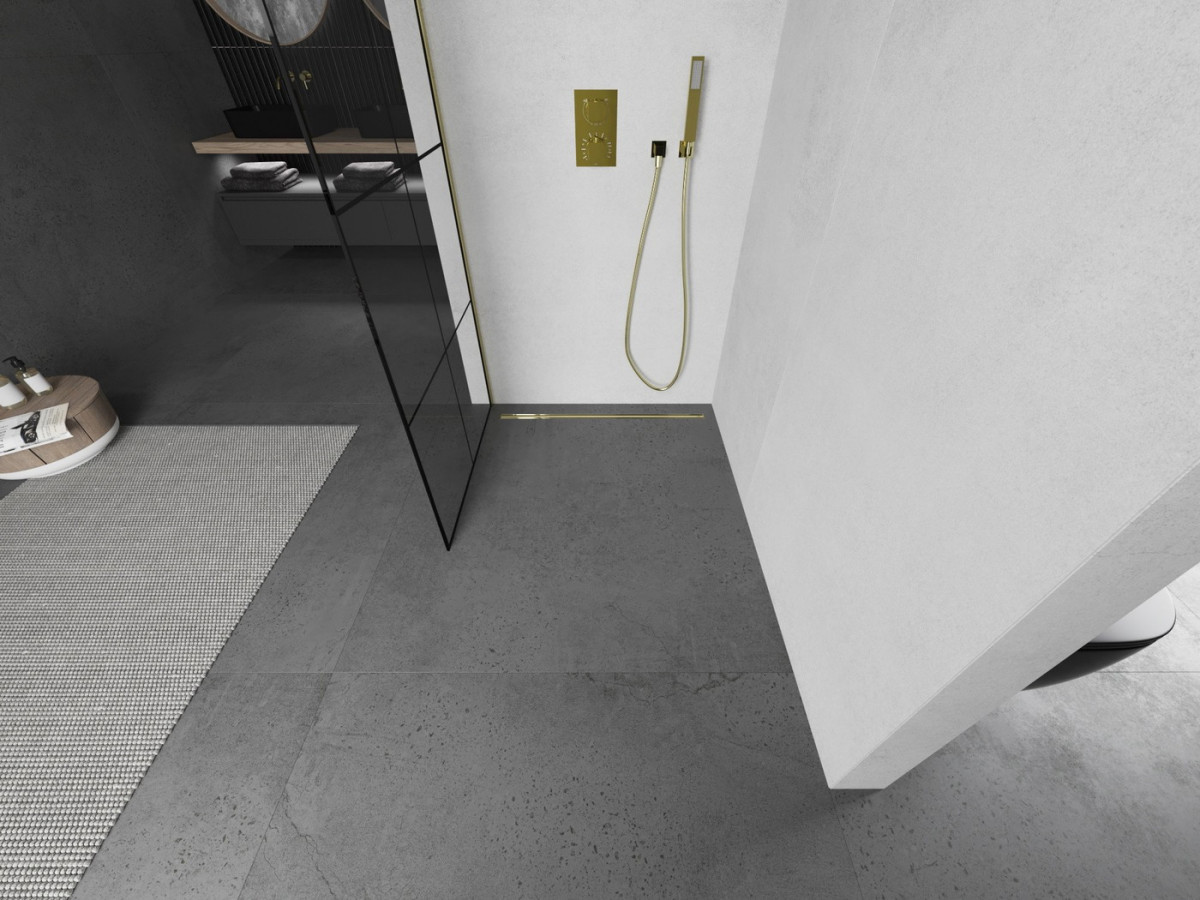 Mexen Kioto Walk In 80 x 200 cm, transparent/ negru modelata 8 mm, auriu - 800-080-101-50-77 Prezentarea