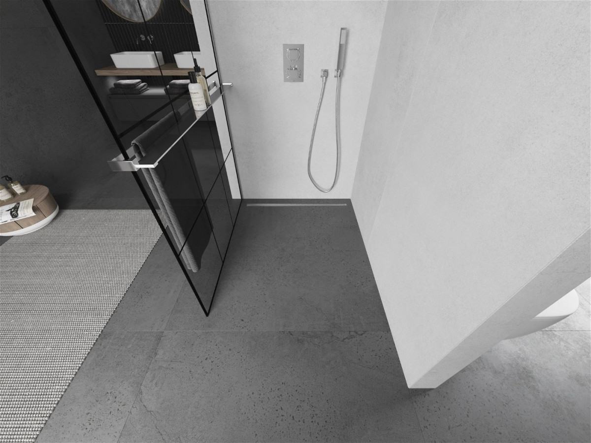 Mexen Kioto+ Walk In cu port prosop 120 x 200 cm, transparent/ negru modelata 8 mm, chrom - 800-120-121-01-77 Prezentarea