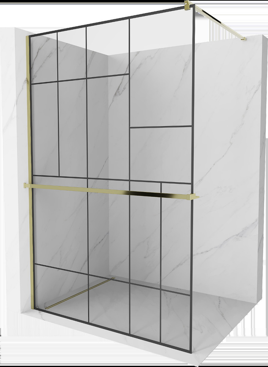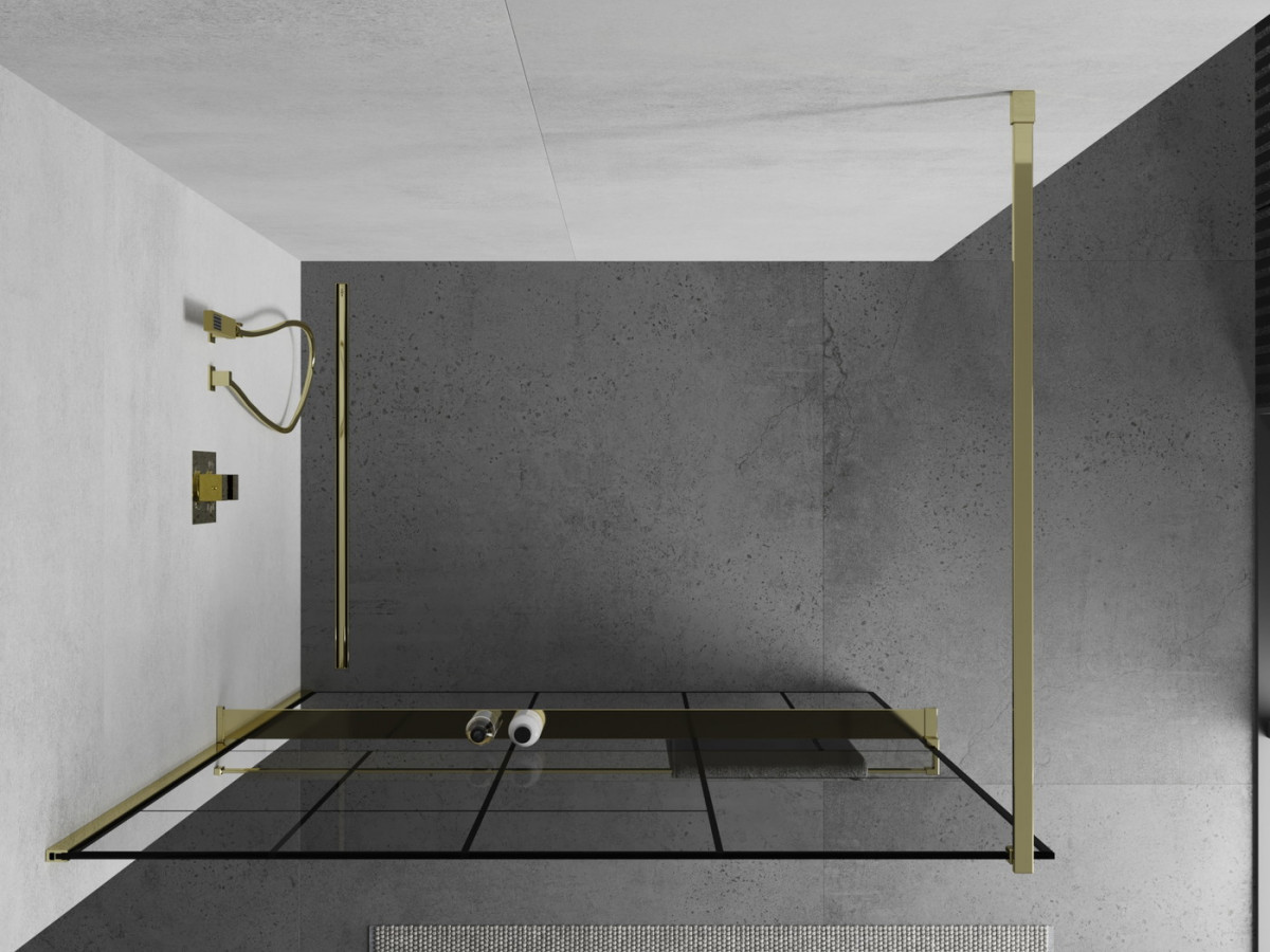 Mexen Kioto+ Walk In cu port prosop 140 x 200 cm, transparent/ negru modelata 8 mm, auriu - 800-140-121-50-78 Prezentarea