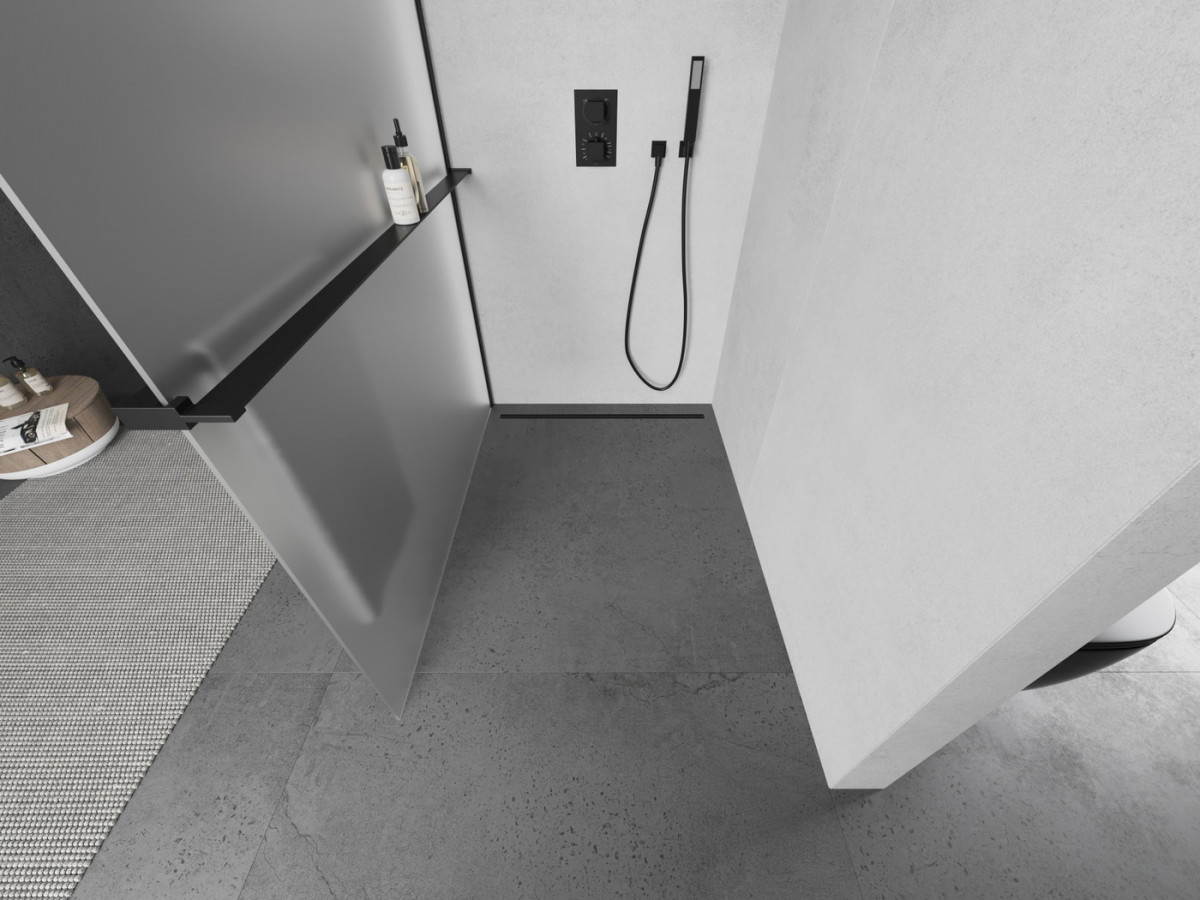 Mexen Kioto+ Walk In cu port prosop 80 x 200 cm, satin 8 mm, negru - 800-080-121-70-30 Prezentarea
