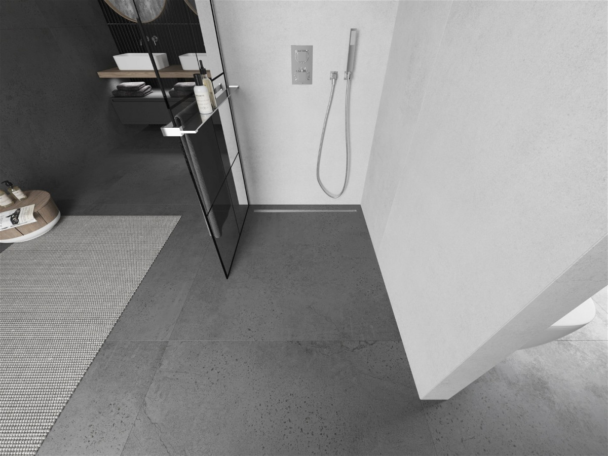 Mexen Kioto+ Walk In cu port prosop 80 x 200 cm, transparent/ negru modelata 8 mm, chrom - 800-080-121-01-77 Prezentarea