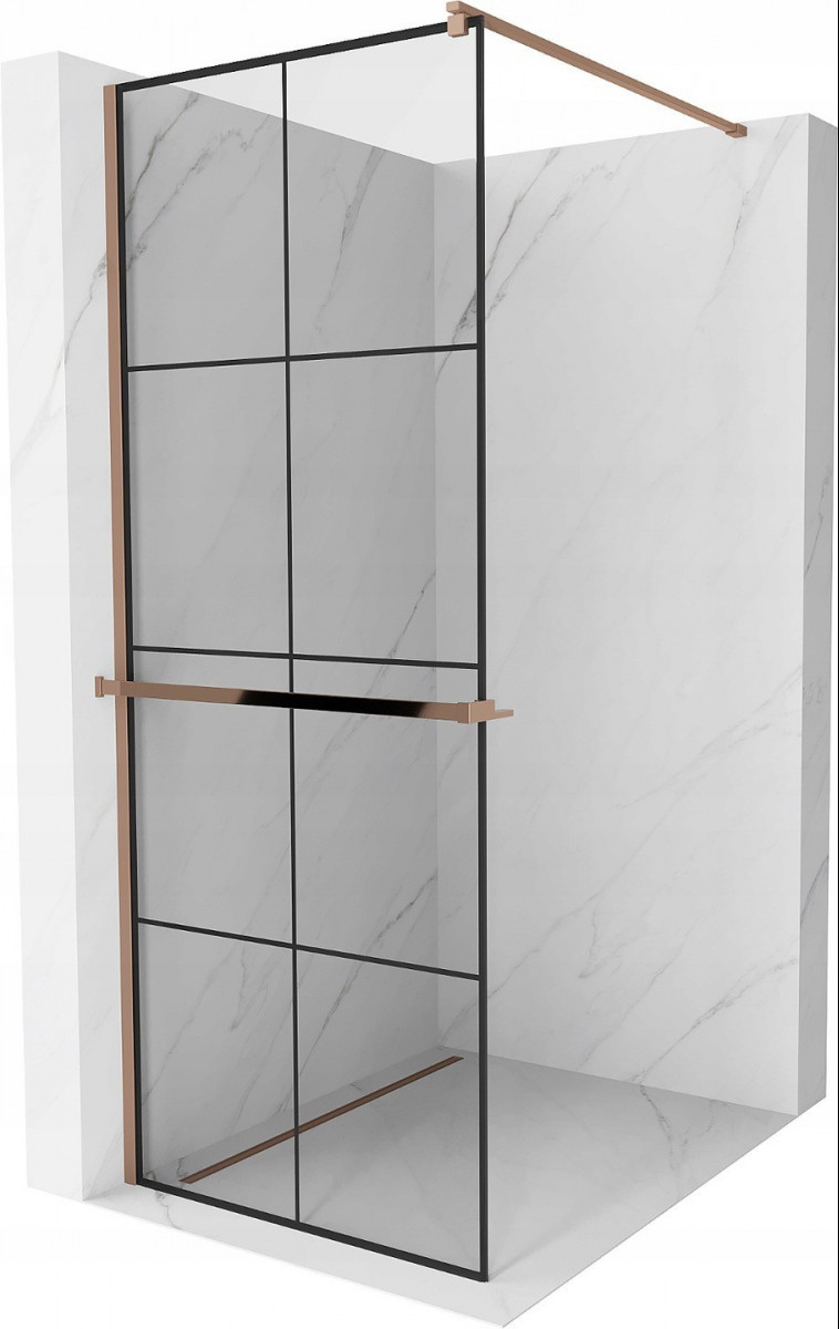 Mexen Kioto+ Walk In cu port prosop 90 x 200 cm, transparent/ negru modelata 8 mm rose auriu - 800-090-121-60-77 Prezentarea