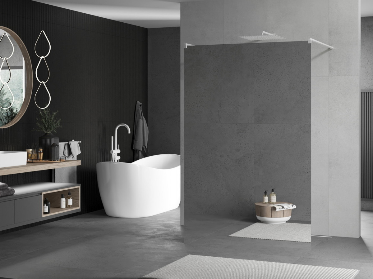 Poate fi montat pe o cadă de duș sau gresie