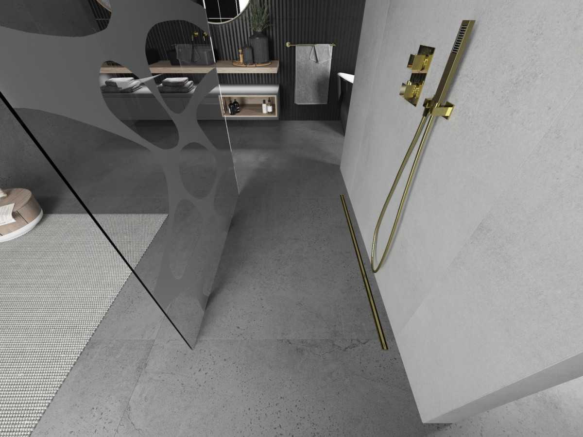 Mexen Kioto Walk In montaj individual 120 x 200 cm, transparent/alb modelata 8 mm, auriu - 800-120-002-50-97 Prezentarea