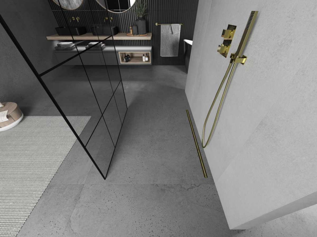 Mexen Kioto Walk In montaj individual 120 x 200 cm, transparent/ negru modelata 8 mm, auriu - 800-120-002-50-77 Prezentarea