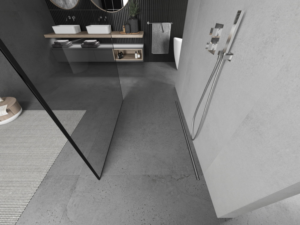 Mexen Kioto Walk In montaj individual 130 x 200 cm, transparent/ negru modelata 8 mm, chrom - 800-130-002-01-70 Prezentarea