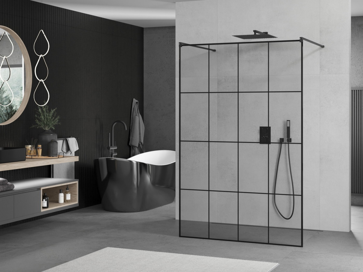 Mexen Kioto Walk In montaj individual 130 x 200 cm, transparent/ negru modelata 8 mm, negru - 800-130-002-70-77 Prezentarea