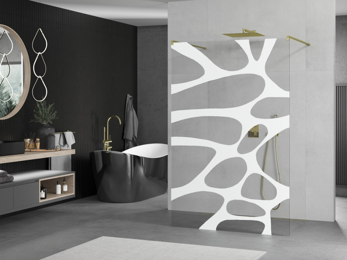 Mexen Kioto Walk In montaj individual 140 x 200 cm, transparent/alb modelata 8 mm, auriu - 800-140-002-50-97 Prezentarea