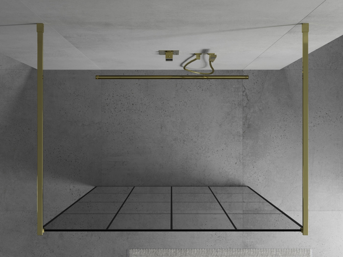 Mexen Kioto Walk In montaj individual 140 x 200 cm, transparent/ negru modelata 8 mm, auriu - 800-140-002-50-77 Prezentarea