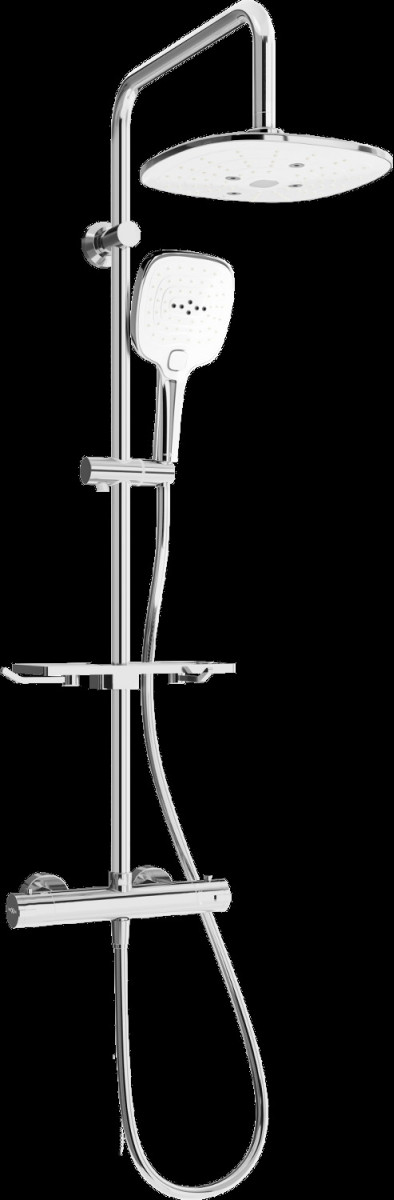 Mexen KT17 Set de dus montat pe perete cu cap de dus cu efect de ploaie si baterie termostatica , chrom/alb - 771501793-02 Prezentarea