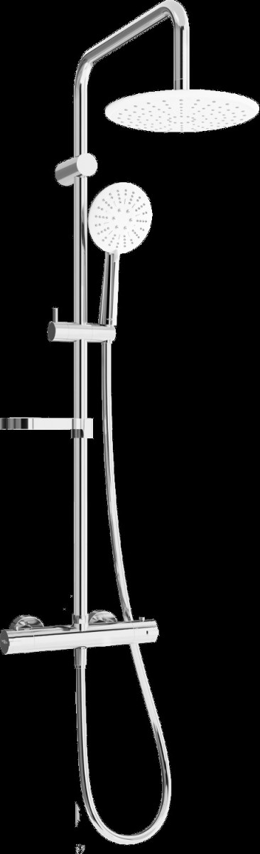 Mexen KX67 Set de dus montat pe perete cu cap de dus cu efect de ploaie si baterie termostatica , chrom/alb - 771506791-00 Prezentarea