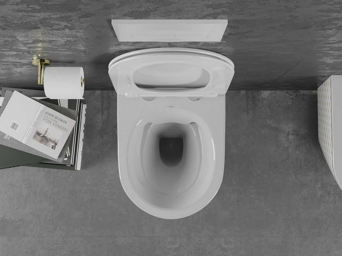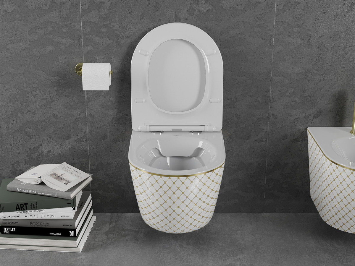 Mexen Lena wc Rimless cu capac soft close slim, duroplast, alb/auriu model în carouri - 30224009