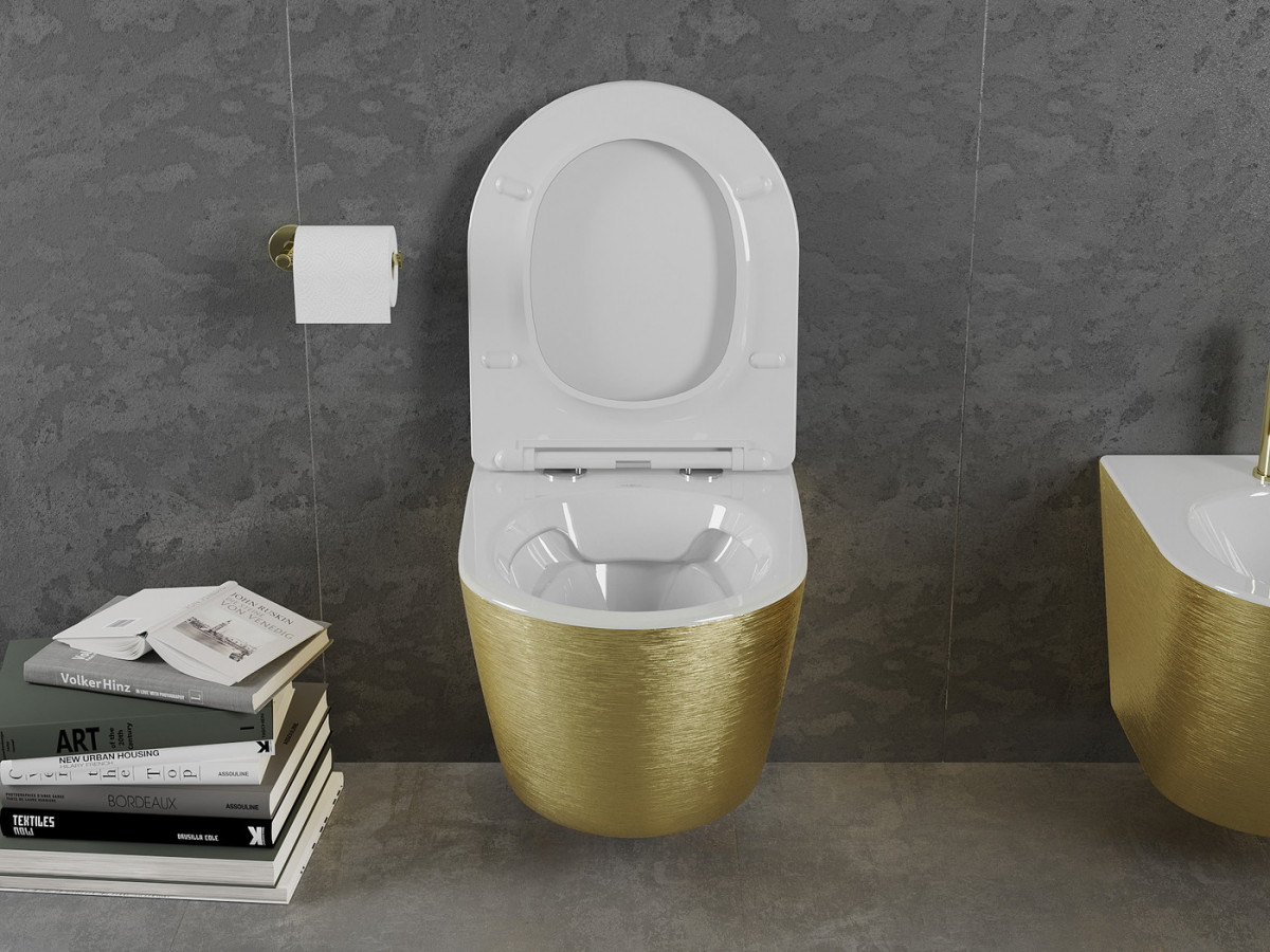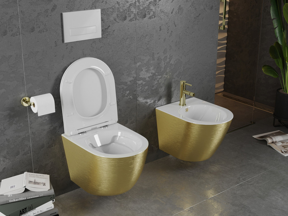 Mexen Lena wc Rimless cu capac soft close slim, duroplast, alb/auriu model linii - 30224007