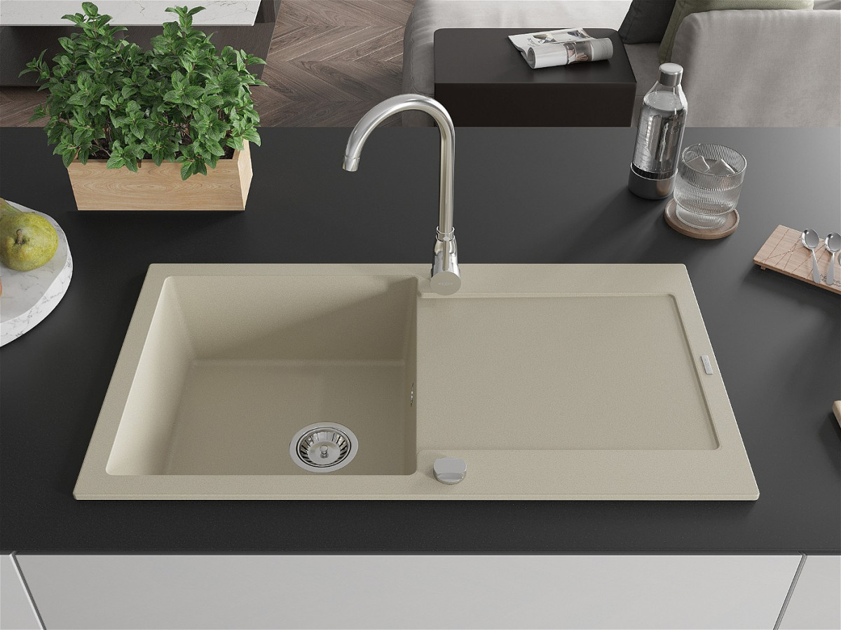 Mexen Leo Chiuveta bucatarie granit 1 cuva + picurator+ cadou pop up sifon 90 x 50 cm, beige - 6501901010-69 Prezentarea