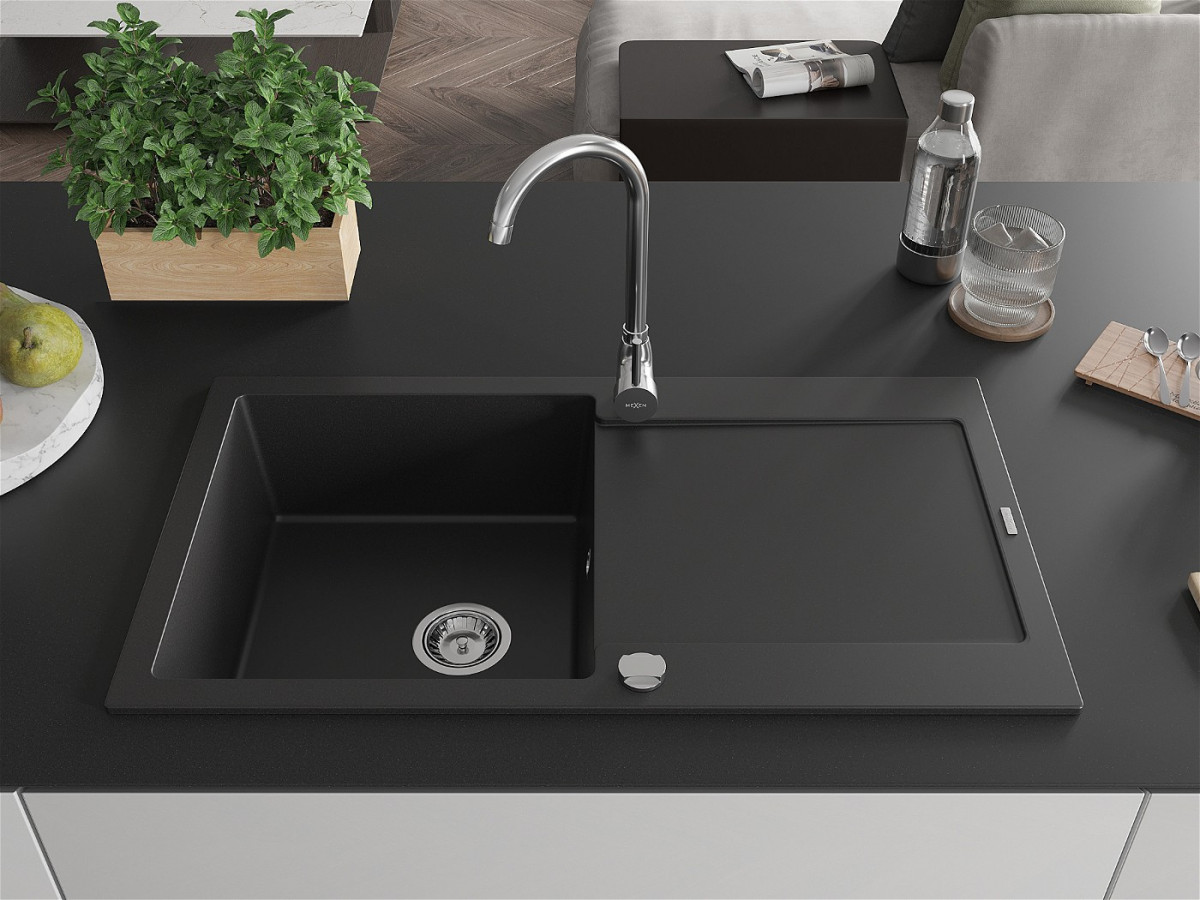 Mexen Leo Chiuveta bucatarie granit 1 cuva + picurator+ cadou pop up sifon 90 x 50 cm, negru - 6501901010-77 Prezentarea
