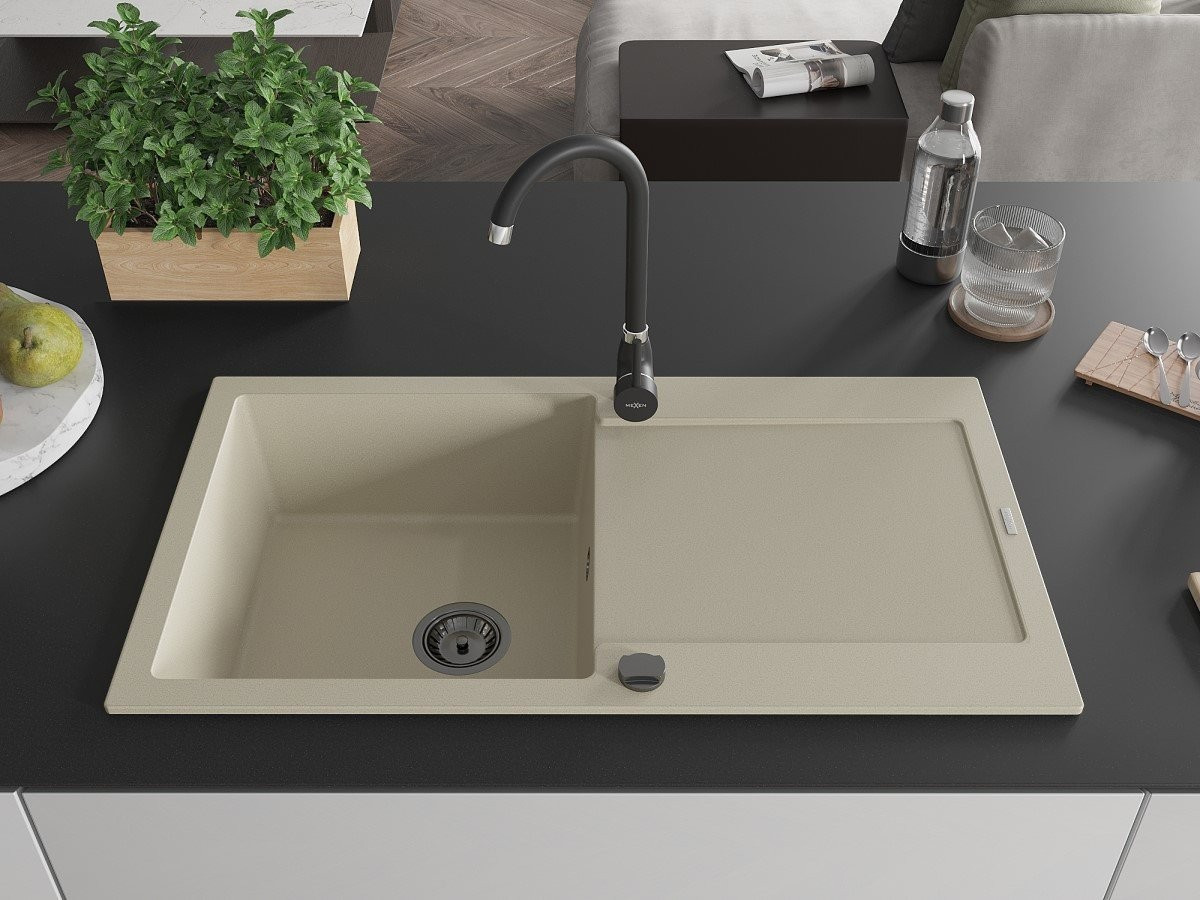 Mexen Leo Chiuveta bucatarie granit 1 cuva + picurator+ cadou pop up sifon 900 x 500 mm, beige, sifon negru - 6501901010-69-B Prezentarea