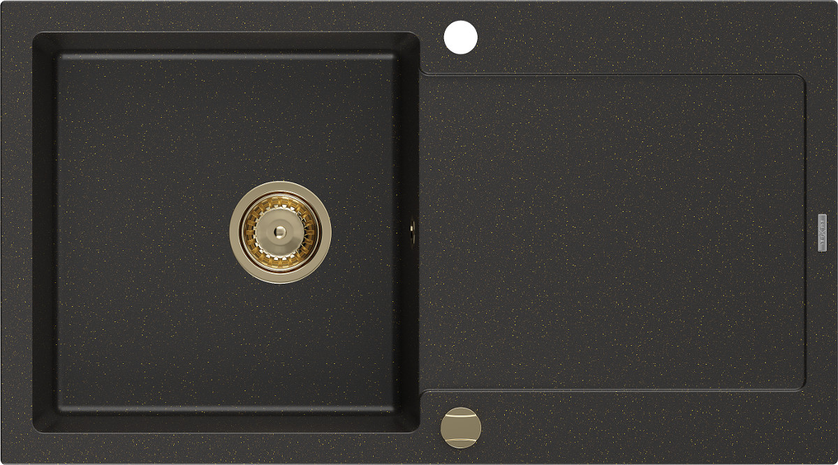 Mexen Leo Chiuveta bucatarie granit 1 cuva + picurator+ cadou pop up sifon 900 x 500 mm, negru / auriu, sifon auriu - 6501901010-75-G Prezentarea