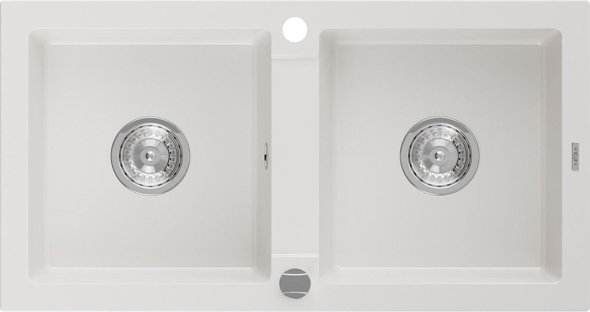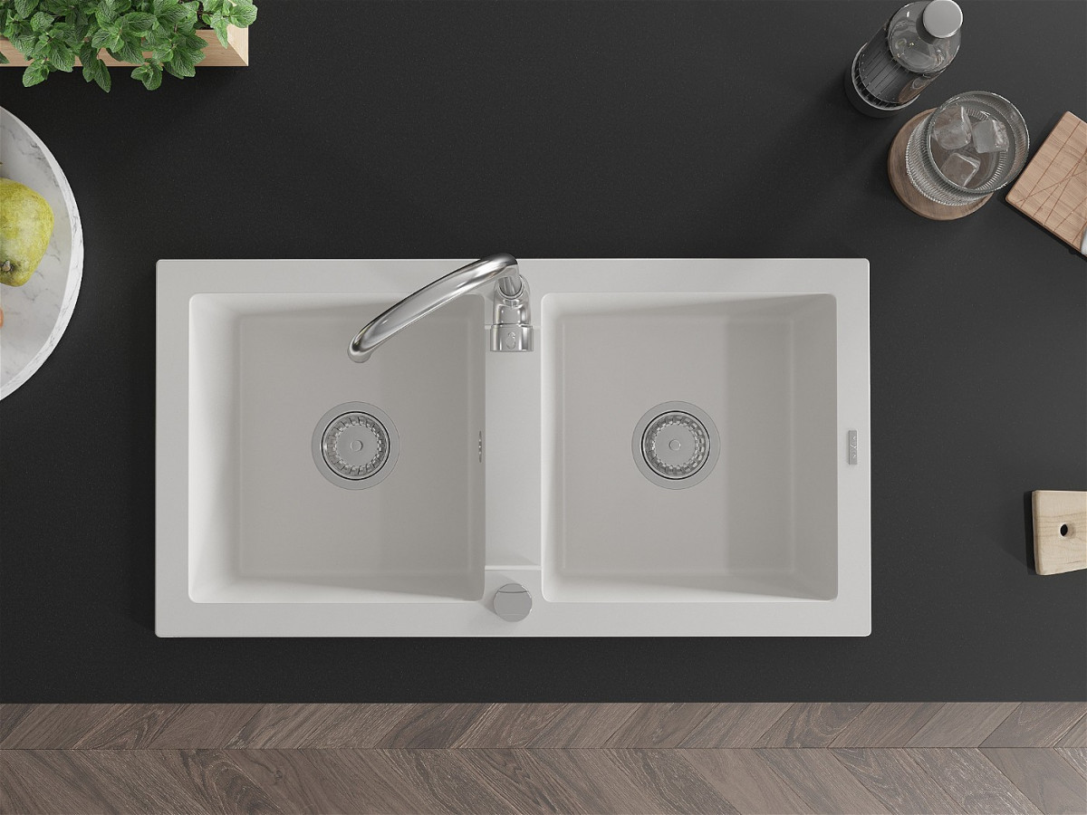 Mexen Mario Chiuveta bucatarie granit 2 cuva+ cadou pop up sifon 82,6 x 43,6 cm, alb - 6504822000-20 Prezentarea