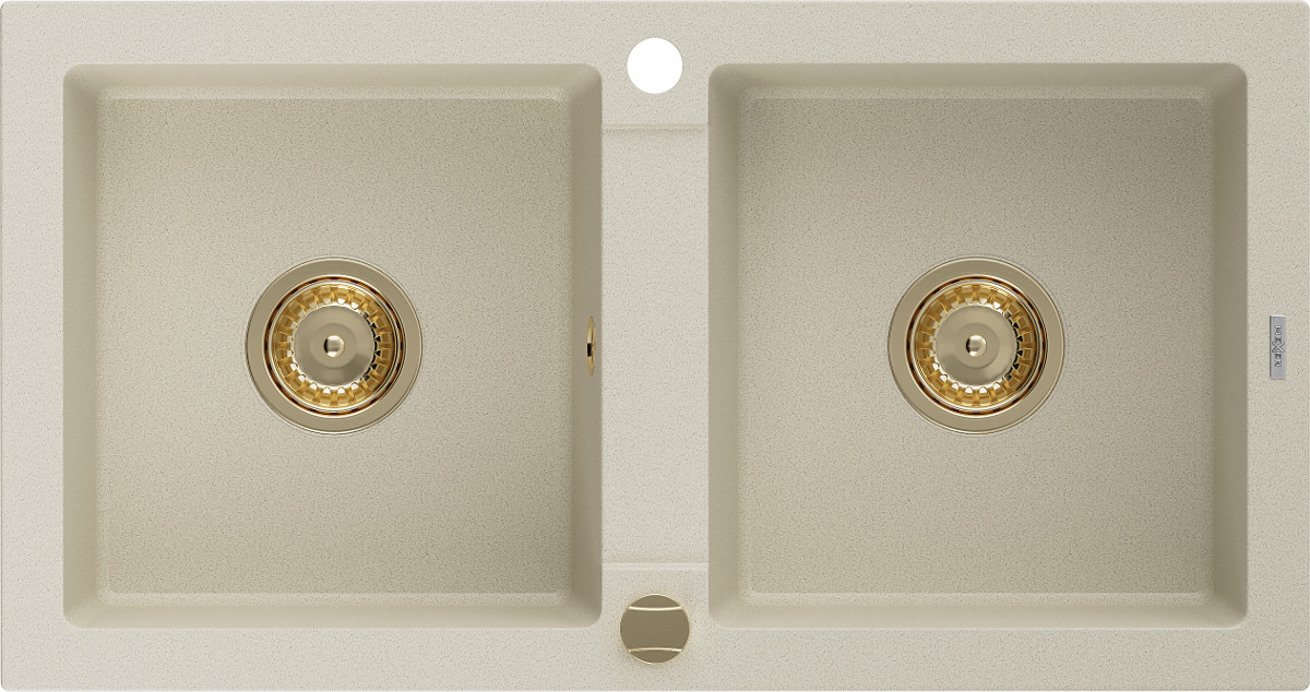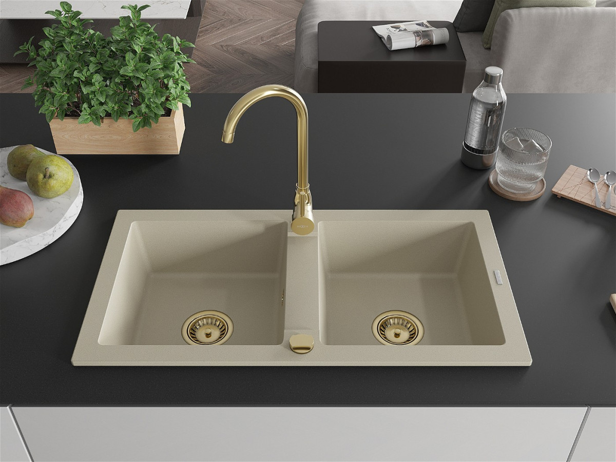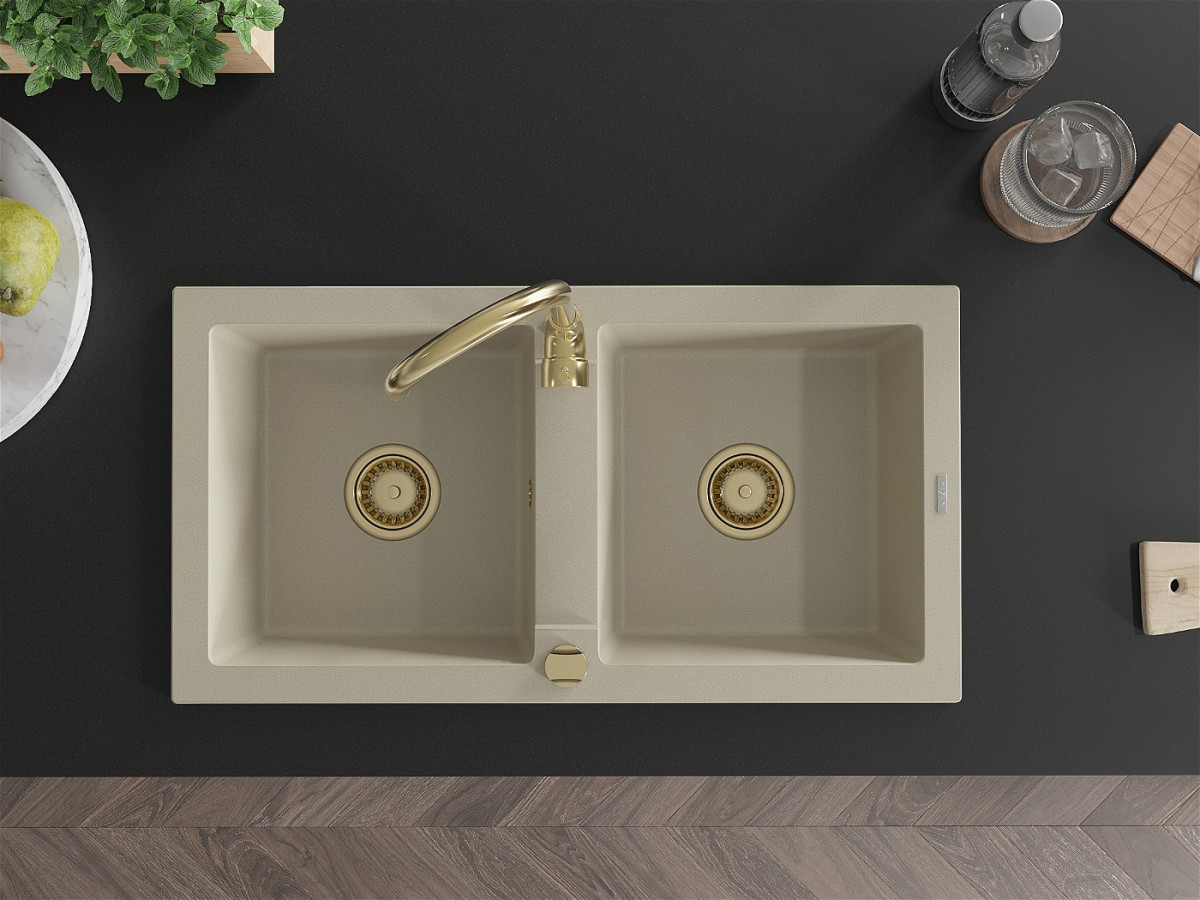 Mexen Mario Chiuveta bucatarie granit 2 cuva+ cadou pop up sifon 820 x 436 mm, beige, sifon auriu - 6504822000-69-G Prezentarea